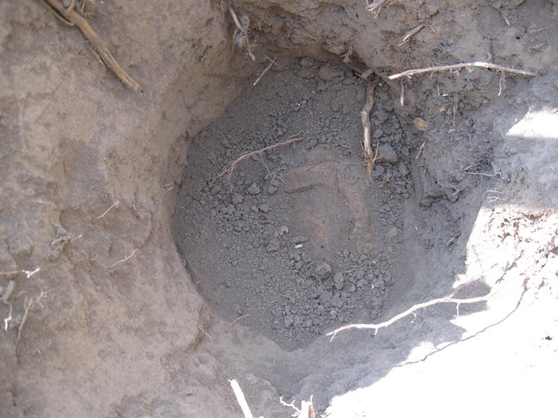 Били как то с камрадом урочище, бывший гансовский опорный пункт. Жара под 30. Чистое поле.. Верховая клюшка там бесполезна, все интересное лежит не менее чем 60-70 см. Копали на щуп. Но особенность места такова, что если щуп проваливается, то это либо запаханная траншея, либо подвал, либо блин и 90% что то интересное будет. И вот щуп с характерной легкость проваливается, по контуру набиваю четкую пулеметную ячейку. Начинаем углубляться, периодически меняясь, что бы остыть.. Глубина метр и щуп на дне во что то упирается.. И вот заглубившись примерно на 2.20, обнаруживаю корову в полном комплекте Почему то сразу подумалось про скотомогильник - взял барьер 2.20 без помощи камрада