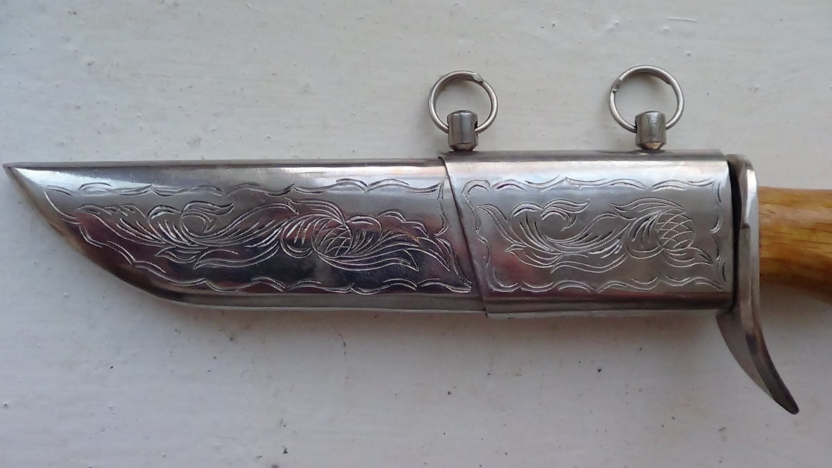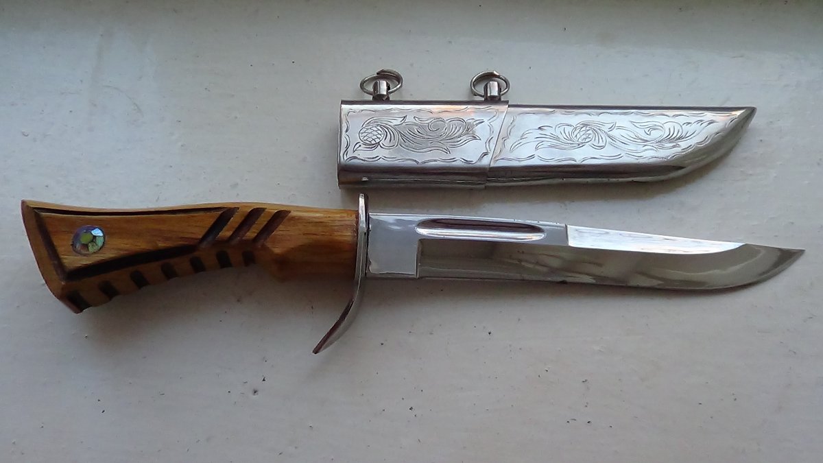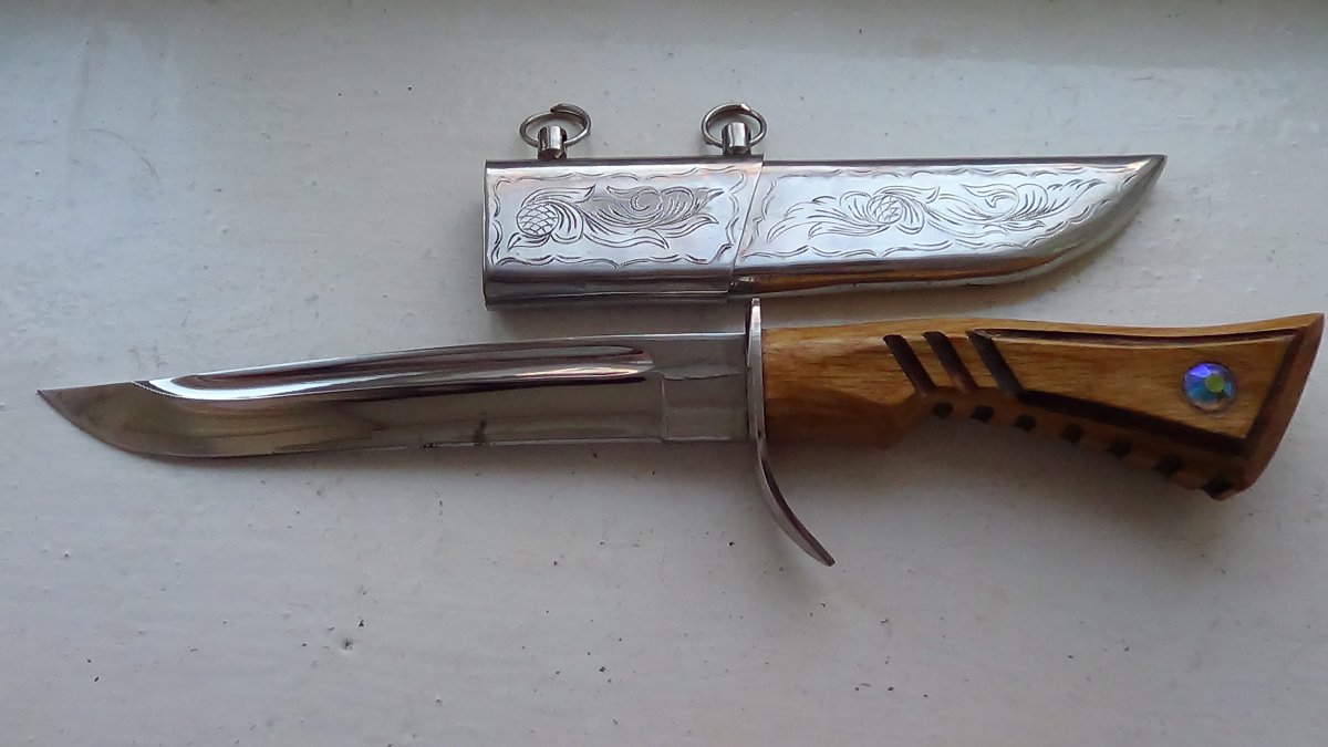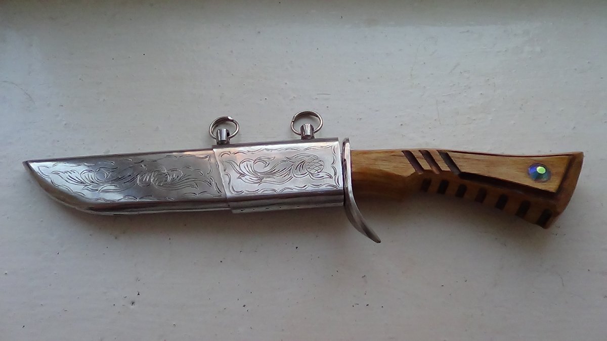 приветствую. большой добротный охотничий нож. общая длинна-33см, клинок-18,5см, обух-4мм 550грн. новая почта.
