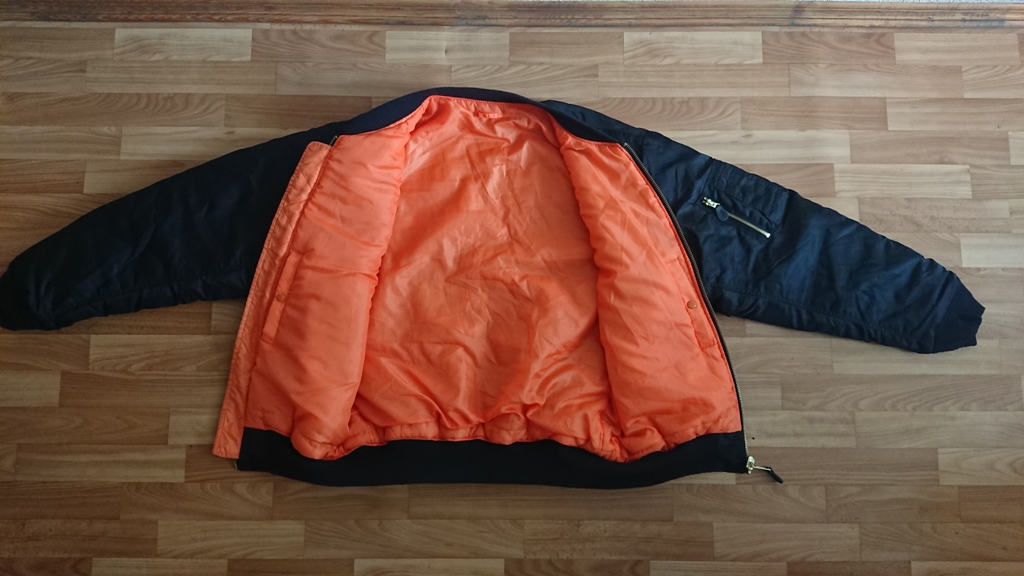 Доброго дня! Если ещё актуально - есть такая. Куртка пилот Brandit MA1 ( бомбер / летная ). Состояние - отличное. Цвет - чёрный/оранж. https://brandit-wear.com/produkte/maenner/jacken/754/ma1-jacket?number=&c=158 https://rozetka.com.ua/337411552/p337411552/ https://www.metalshop.com.ua/p/93919-зима-куртка-ma1-brandit-3149-schwarz?var=213857&gad=1&gclid=Cj0KCQjw7aqkBhDPARIsAKGa0oLHBc4fqNfDoFPAL1Dh3AH6syviGt7ozUBNXJBAmEBRSMWuv5kLsasaAnsREALw_wcB https://milworld.pl/product-eng-16680-Brandit-Bomber-Jacket-MA1-Black.html 100 % нейлон послужил материалом для верха модели. Подкладка традиционного оранжевого цвета изготовлена из 100 % полиэстера. Такой яркий цвет позволял, вывернув бомбер наизнанку, подать сигнал спасателям в случае аварийной посадки. Под подкладкой проложен утеплитель из полиэстера оригинальной структуры. Плотность утеплителя в торсе 200 г/м2, в рукавах 180 г/м2. При своей легкости куртка очень теплая, отлично защищает от ветра, дышащая и не парит. Утеплитель прекрасно сохраняет тепло. Полиэстеровая подкладка интенсивно пропускает излишек влаги под одеждой к утеплителю, который выталкивает ее к наружному слою куртки. Застегивается бомбер на фронтальную прочную молнию, с внутренней стороны для защиты от ветра прикрытой клапаном. Подол модели, воротник и широкие манжеты изготовлены по принципу трикотажной резинки из полиакрила, в который добавлено 25 % эластана для придания ткани эластичности. Набор карманов традиционный для таких моделей. У пояса расположены 2 косых кармана с трапециевидными клапанами на кнопках. На левом рукаве накладной карман на зиппере с вертикальным входом, на которм нашит карманчик для карандашей и ручек. Внутри также предусмотрены 2 кармана. Вся фурнитура - оригинальная и рабочая. Размер - 3XL. Замеры: Плечи - 60 см. Рукав от плечевого шва - 73 см. Полуобхват груди - 70 см. Длина по спине от воротника - 80 см. Цена - 1500 грн.