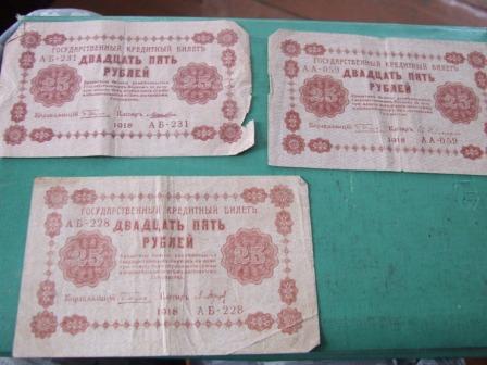 17. 25 рублей 1918г. состояние - на фото. колииство 3 штуки. цена 35 гривен (за одну купюру) плюс дорога. вопросы, предложения в личку.