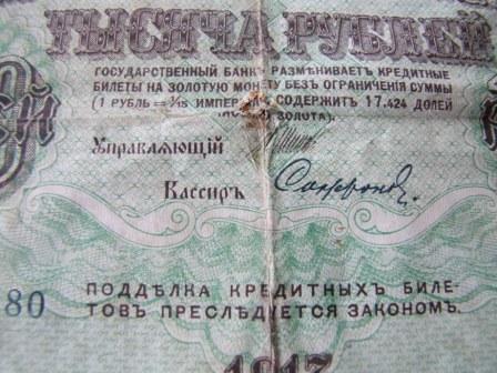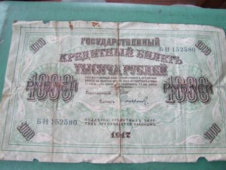 18. 1000 рублей 1917г. состояние - на фото. количество 1 штука. цена 90 гривен (за одну купюру) плюс дорога. вопросы, предложения в личку.