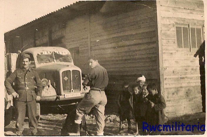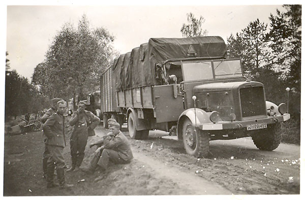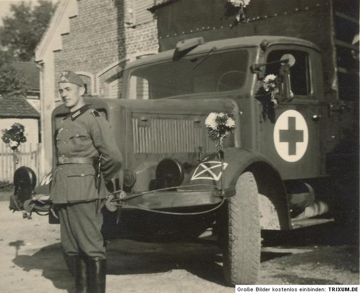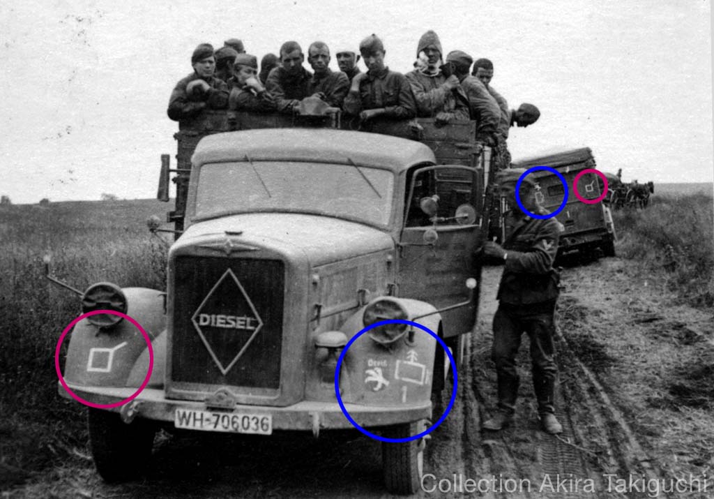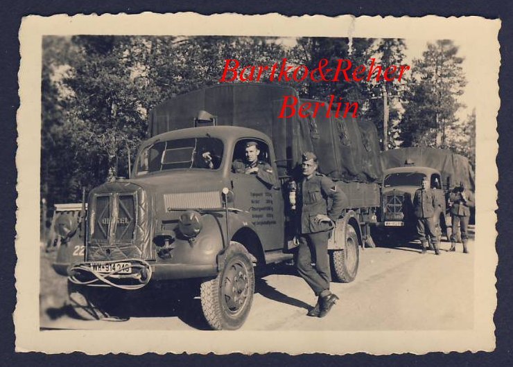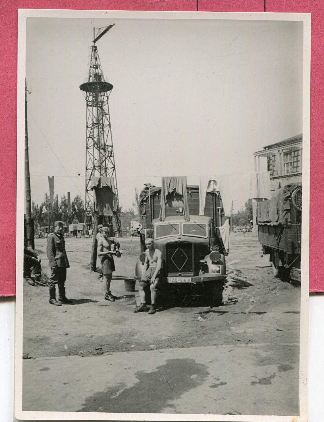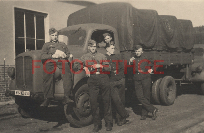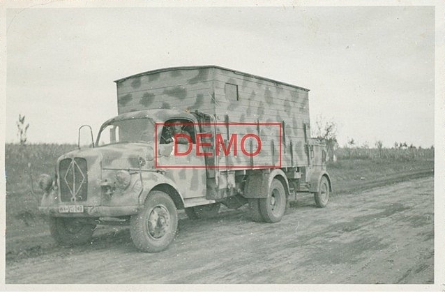 1.Вот откопал ещё одно интересное фото.На нём- 3-т дизельный B 3000 D.Если внимательно присмотреться, то кабина на нём в точь-точь такая же,как и на модели с бензиновым двигателем.За исключением надписи "Diesel", которая во фронтовых условиях могла и "потеряться".Одним словом грузовики Typ 3t Benzin G.W. и Typ 3t Diesel G.W. с цельнометаллической кабиной были внешне одинаковы. 2.B 3000 O со снятым капотом. 3.Колона B 3000 O из подразделения тылового обеспечения. 4.B 3000 O из FLAK-Regiment 64 ( 64-й полк зенитной артиллерии).Снимок сделан в Керчи, Багерово, декабрь 1942 года.