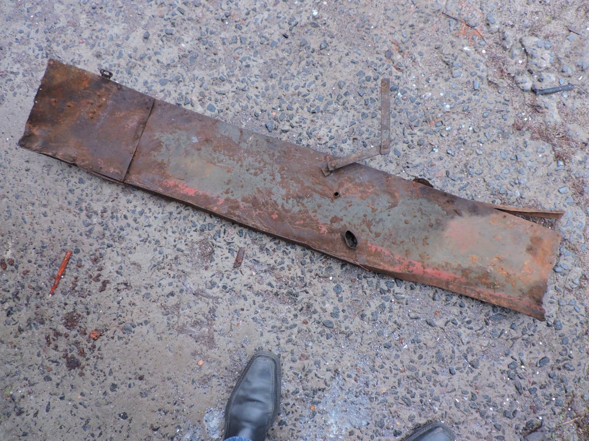 По фото, предположу. Фрагмент надгусеничной полки советских лёгких танков : Т-26 (!) или БТ(?) з.ы. Ширина в пределах 350 мм ???