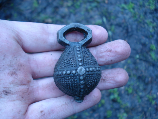 Знайдено в лісі.поселення за 1км.Форма восьмиграннаЛитий.бо видно шов(мабуть чугун).В тому районі були слідуючі знахідки:сокира середньовіччя.бронзовий наконечник списа.переламаний кинжал-акінак.наки стріли.бронза і залізо.З повагою.
