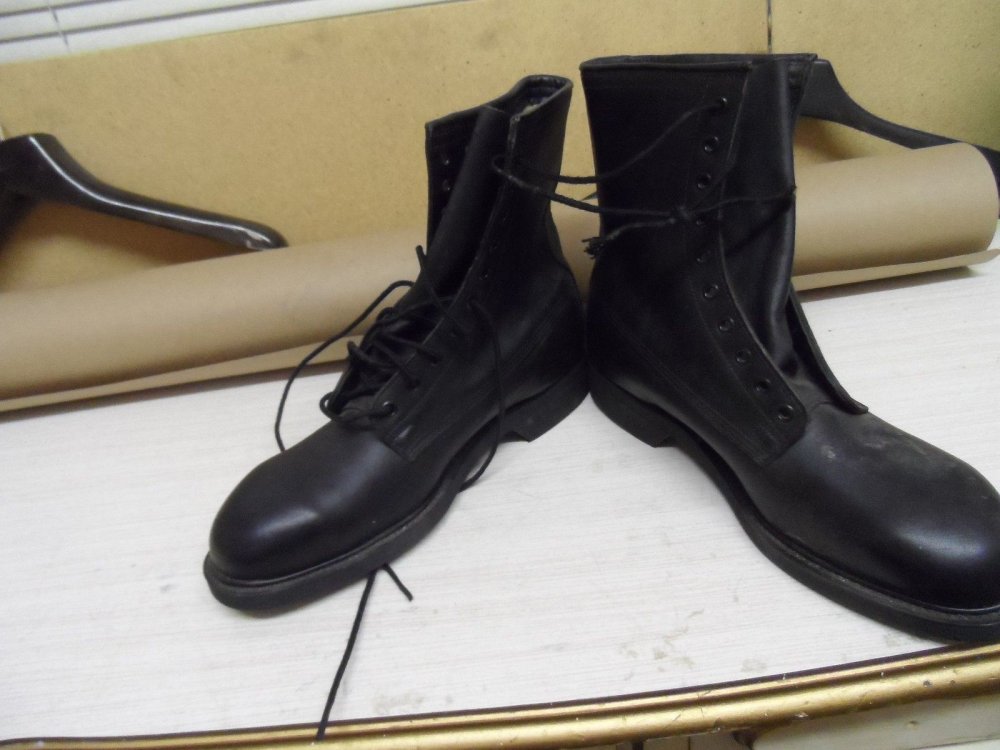 27. Army Black Leather Boots Wolverine World Wide. Inc. Новые армейские ботинки. из США. Дата выпуска 12-AUG-1992 Настоящий армейский винтаж. Стелька Rogers Poron из вспененной резины на матерчатой основе Стальной носок Подошва прошита с двух сторон Замечательная натуральная кожа без подкладки и окрашивания с внутренней стороны. Низкий подъем, ступня с высоким подъемом просто не входит в ботинок. Данные ботинки отлично подойдут для городской эксплуатации под джинсы/брюки в непогоду и межсезонье. И запах..непередаваемый запах настоящего винтажа! Размер 9R. Длинна стельки: 28.7см. Ширина стельки в самом широком месте:9.7 см. Цена 1020 грн.
