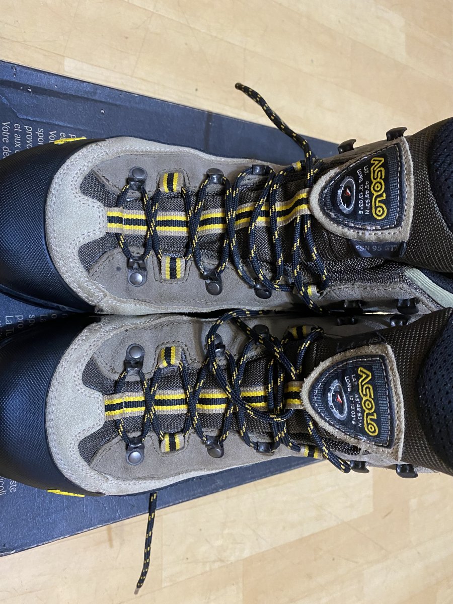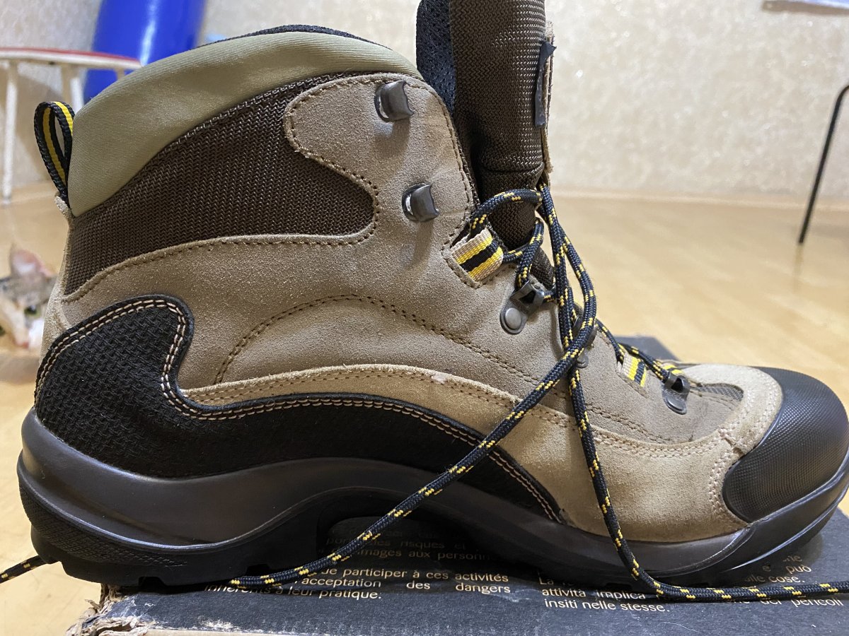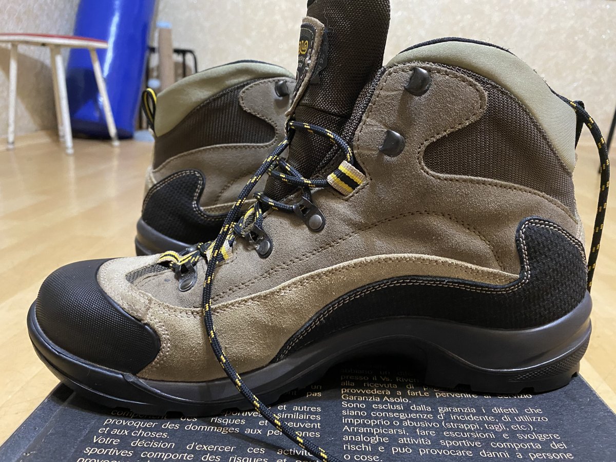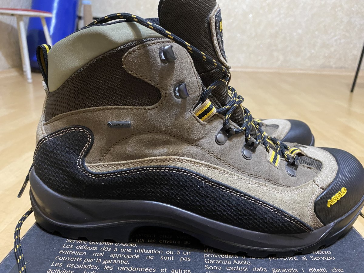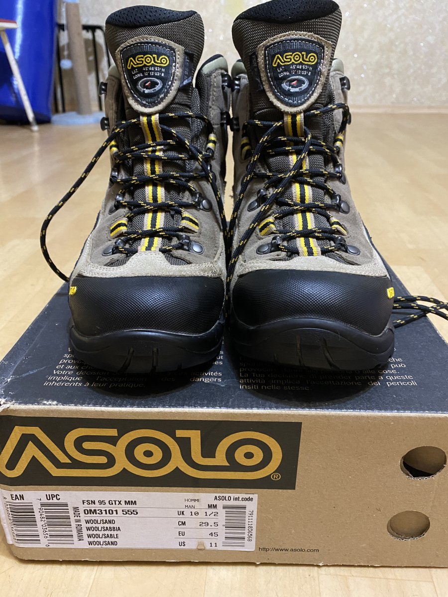 Состояние близкое к идеалу. Покупал для походов, в итоге оказались жесткие, носились от силы 10 раз на пострелушках. Цена 4600. Описание: Ботинки Asolo FSN 95 GTX ММ - популярная модель ботинок, прекрасно зарекомендовала себя в тяжелых походных условиях, данная модель стоит на обмундировании в некоторых спецподразделениях и пользуется успехом среди военных. Верх ботинка выполнен из замши и высокопрочного нейлона. Подкладка из ткани с мембраной Gore-Tex обеспечивает долговременную непромокаемость, имеет хорошую воздухопроницаемость, не боится изгибания и холода. Подошва обеспечивает отличное сцепление, как на сухой, так и на мокрой поверхности вне зависимости от температурных режимов. Имеет повышенную износостойкость, а отсутствие зацепов в середине подошвы позволяет ноге естественно изгибаться. Материалы и технологии: Водоотталкивающая замшевая кожа - это кожа жирового дубления. Такое дубление представляет собой дубление различными жировыми веществами. Эти вещества проникают в кожу, окисляются там и уже в окисленном состоянии химически связываются с белком кожи. В результате вышеуказанных процессов получается кожа замшевого дубления. Замшевая кожа мягка, эластична и очень водоупорна, она выдерживает весьма значительное пребывание в воде почти совершенно без ущерба для качества. Nylon — ткань из полиамидного (капронового) волокна. Устойчива к выцветанию, неприхотлива в уходе, создает прекрасную защиту от дождя и ветра, хорошо «дышит». Применяется для пошива спортивной одежды, тентов и прочие. Gore-Tex® - это трехслойная система, состоящая из внешней ткани, собственно мембраны и подкладки (внутренней ткани). Основные свойства материала обеспечивает мембрана. МембранаGore-Tex - это очень тонкая фторопластовая пленка, особенность которой состоит в том, что она имеет огромное количество отверстий на единицу площади. Эти отверстия отличаются очень маленьким размером, поэтому молекулы воды в виде пара, сквозь них проходят, а вот капли, за счет того, что они больше молекул во много раз, не проходят. Особенности ботинок Asolo FSN 95 GTX: цельный кусок водоотталкивающей замши, толщиной 1.8 мм мембрана GORE-TEX подошва средней жесткости с самоочищающимся рисунком протектора удобная классическая шнуровка усиленный обрезиненный носок данная модель есть в двух вариациях колодки: MM - стандартная колодка и MW - широкая. круглогодичная комфортная защита для занятий на открытом воздухе повышенная воздухопроницаемость для защиты от жары оптимальная теплопроводность и превосходная защита от влаги обеспечивает ежедневный баланс внутреннего микроклимата ног надежная защита от внешней влаги сохраняет ноги сухими Характеристики: Внешний материал: Водоотталкивающая замшевая кожа 1,6 - 1,8мм, высокопрочный нейлон с влагоотталкивающей пропиткой Внутренний материал: подкладка с мембраной Gore-Tex® Performance Comfort Footwear Промежуточная подошва: Asoflex 00 SR Стелька: анатомическая Lite 2 Колодка: MM - стандартная, MW - широкая Промежуточная подошва: Asoflex 00 SR Подошва: Asolo FSN (rubber-pu)