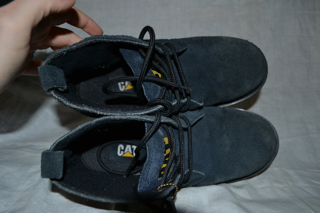 Ботинки демисезоные CAT(Caterpillar).В хорошем состоянии,без дефектов,цвет тёмно-синий,можно почистить или простирнуть,носки не продавлены,подошва не стёрта,не тяжёлые.Размер указан 39,длина стельки 25см. Цена 450 грн.