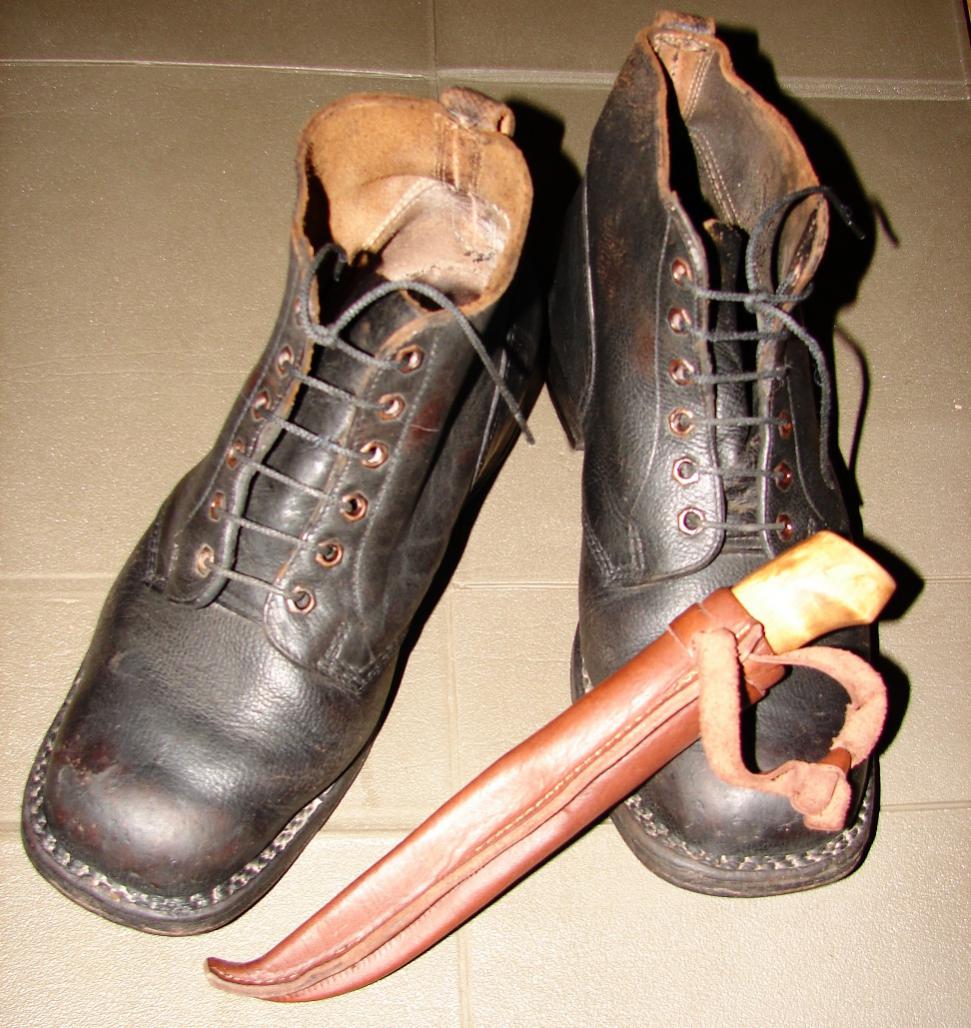 Такие вот ботиночки, прибыли со склада военного имущества в Финляндии. С ботинками ничего не делалось, какими-либо хитрыми составами, химией не обрабатывались, только протёрли касторовым маслом, чтобы стереть складскую пыль. Кожа мягкая. Внутри - чистота, внутренний слой носка выполнен из тонкой кожи. Подошва - кожа. Прошита и подбита деревянными гвоздиками. Шнурки стоят не родные. Размер 41. Если кому не на манекен, то по запросу могу замерить длину стельки. Вещь в хорошем сохране и очень качественная. Восхищают тройные швы в местах соединения союзки с берцем и задником. Цена 650 грн. Пуукко не продаётся, показан для тематического натюрморту