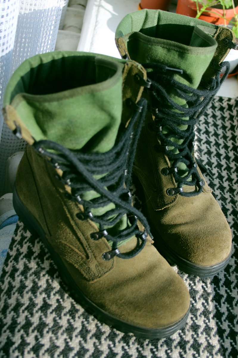 Замшевые берцы вооруженных сил Нидерландов ("Zomer kist groen") Б/у. Одевал раз 10-15 по аэродрому пока сообразил, что не подошел размер В принципе все есть на фото, но на любые вопросы обязательно отвечу и предоставлю дополнительные фото. Крайнее фото при естественном освещении для передачи цвета. Покупал за 1100, поэтому пусть будет 550 грн. P.S. Необходимо помнить, что эти ботинки должны быть с вкладышами. Поэтому они идут без стельки, и размер, в реале, немного больше чем указанный на подошве. С уважением, NDU