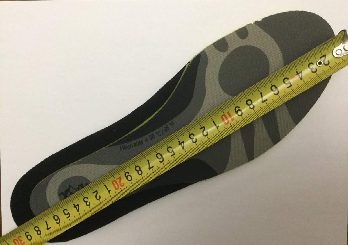 295х95. Стелька в этой обуви должна быть на 1-1,5см длиннее стопы. У меня 283мм.(данный размер подобран идеально для 283-285мм)