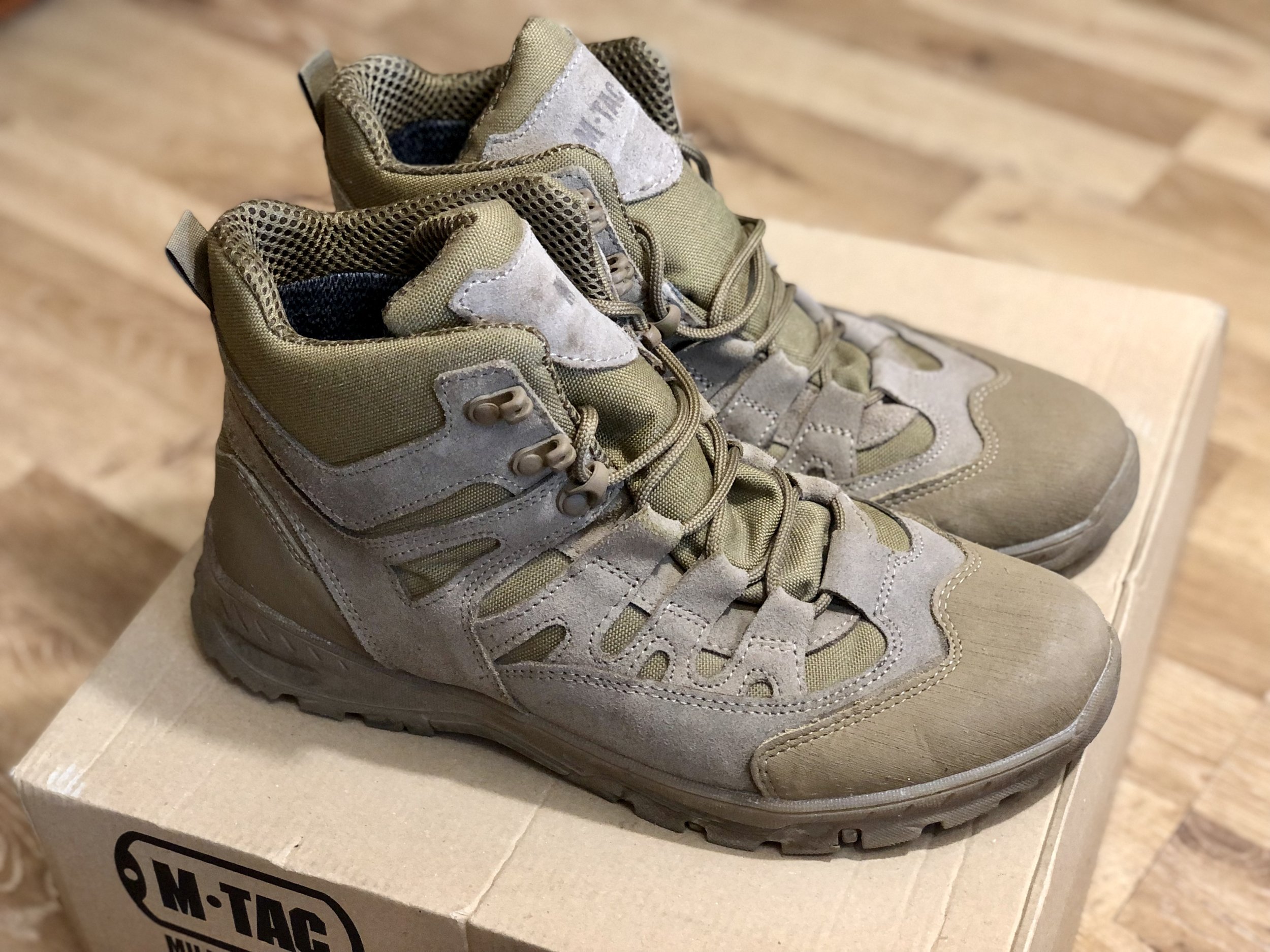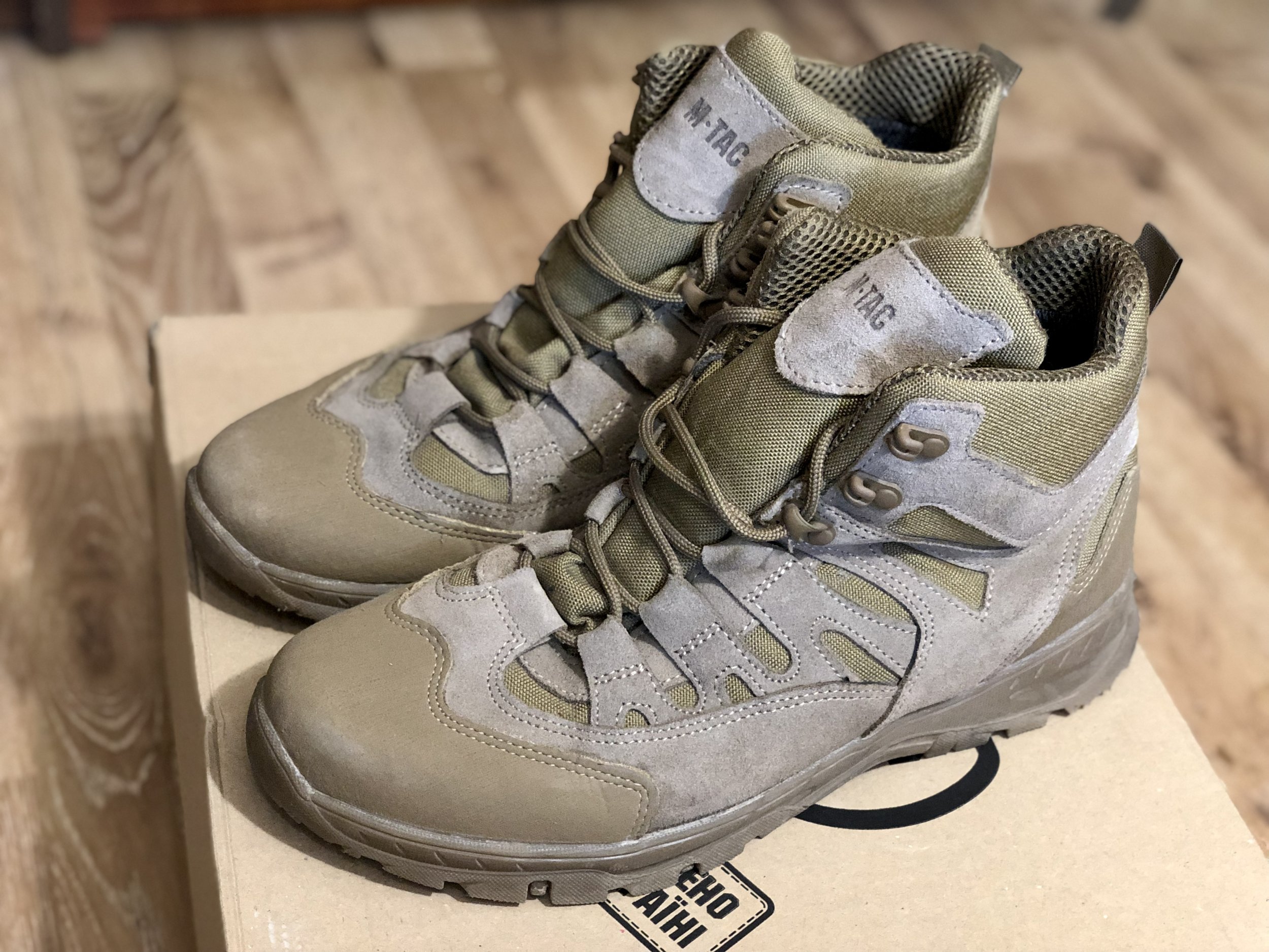 M-Tac ботинки полевые Panther созданы как износостойкая треккинговая обувь. Ботинки хорошо гармонируют с разной одеждой, будь то тактические брюки или же обычные джинсы. Они отлично подойдут для ношения как в городе, так и в полевых условиях. Ботинки удобные, хорошо сохраняют тепло и не пропускают влагу, в то же время не давая ногам перегреваться на длинных дистанциях. Материал верха - натуральная замша и со вставками из кордуры 1000D. Такая комбинация одновременно обеспечивает прочность и способствует дополнительной вентиляции. Водоотталкивающая пропитка защищает от влаги. Подкладка ботинок - мембрана, она не дает воде проникнуть внутрь и испаряет пот наружу. Таким образом поддерживается сухость и естественная терморегуляция. Подошва сделана из прочной резины и обработана специальным антимасляным покрытием. Протектор обеспечивает хорошее сцепление с любым типом поверхностей. Метод крепления подошвы - вакуумно-термический, без лишних швов. Шнуровка на петлях и крючках позволяет посадить ботинки по ноге. Одевались 2-3 раза, состояние 5-. Размер по бирке 43, маломерят, по факту 44 (стелька 285 мм). Цена продано грн . Оплата на карту приват/моно. Отправка НП за счёт покупателя, без делительных резервов.