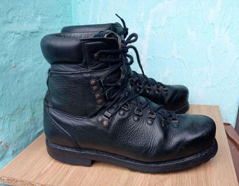 Приветствую. Скорее всего горные ботинки(судя по фиксации голеностопа) бундесвера старого образца. Вряд ли на Швейцарские горные ботинки ставили подошву Континенталь,у них есть свои подошвы,да и у швейцарцев другой покрой ботинка