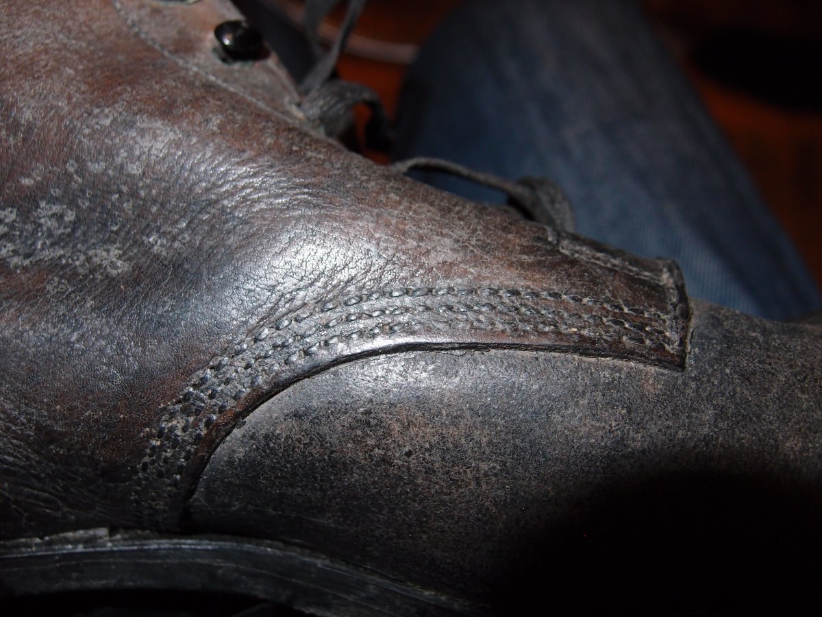 Приветствую. Это немцы, но ранняя послевойна, с таким носком, если не ошибаюсь. Классическая модель М37 с зацепами вверху имеет другую форму носка (собиралась на колодке совсем другой формы, нежели ваша пара) и отличный от этой модели крой. 5 рядов блочек внизу и 4 ряда зацепов вверху. Так же оснащались подметками, на которые набивались металлические укрепители.