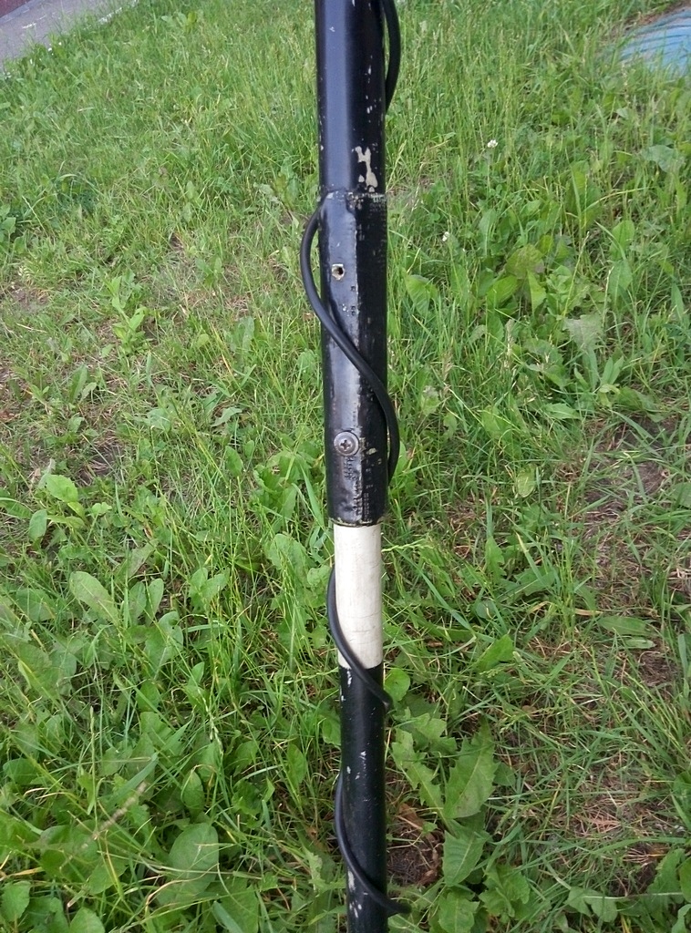 Блок в хорошем состоянии, из минусов обломан фиксатор батарейного отсека и есть отметина на пленке экрана, ни на что не влияющая, все видно по фото. Трещин или других повреждений нет. Была произведена замена динамика на новый. Катушка в отличном состоянии, трещин или иных повреждений нет. Штанга самодельная, с такой брал, полностью функциональная, немного гуляет при энергичном махе, можно регулировать длину.