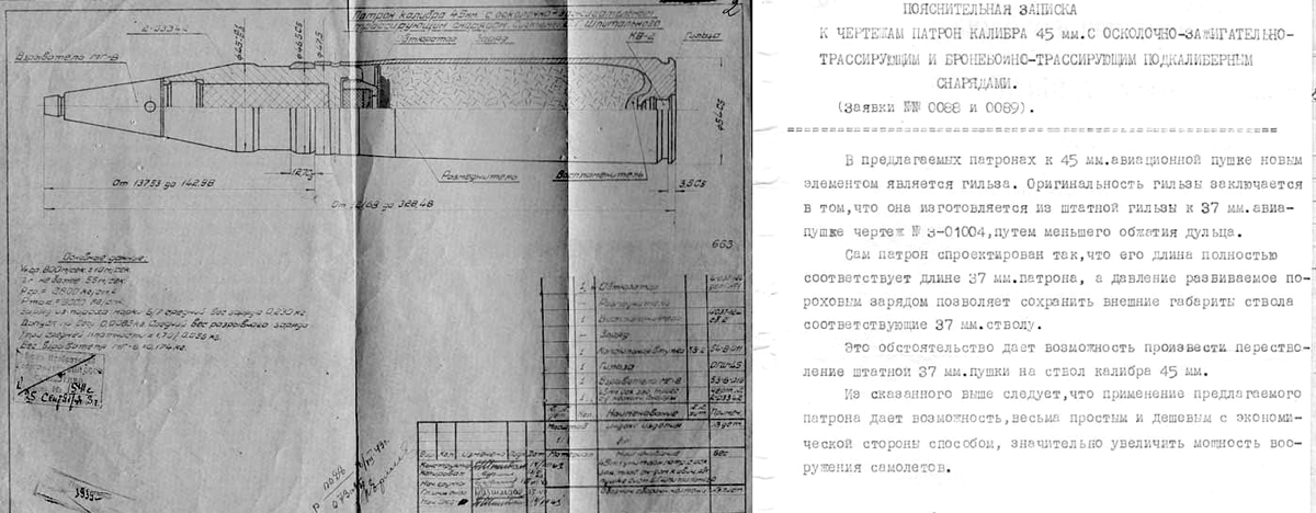 Тут как бы есть один нюанс... в единственном источнике, где пишут про данный боеприпас и пушку для него - книга К.Колла. Там указано, то АЗ-45 предназначен для 45-мм пушки Н-45, проходившей испытания после войны в 40-х годах... Даже есть конкретные сведения об испытаниях Н-45 в марте 1947 года на Як-9П. И тут получается - либо он ошибается во временных рамках, либо были более ранние эксперименты с такими боеприпасами?... или 67 - это не год)