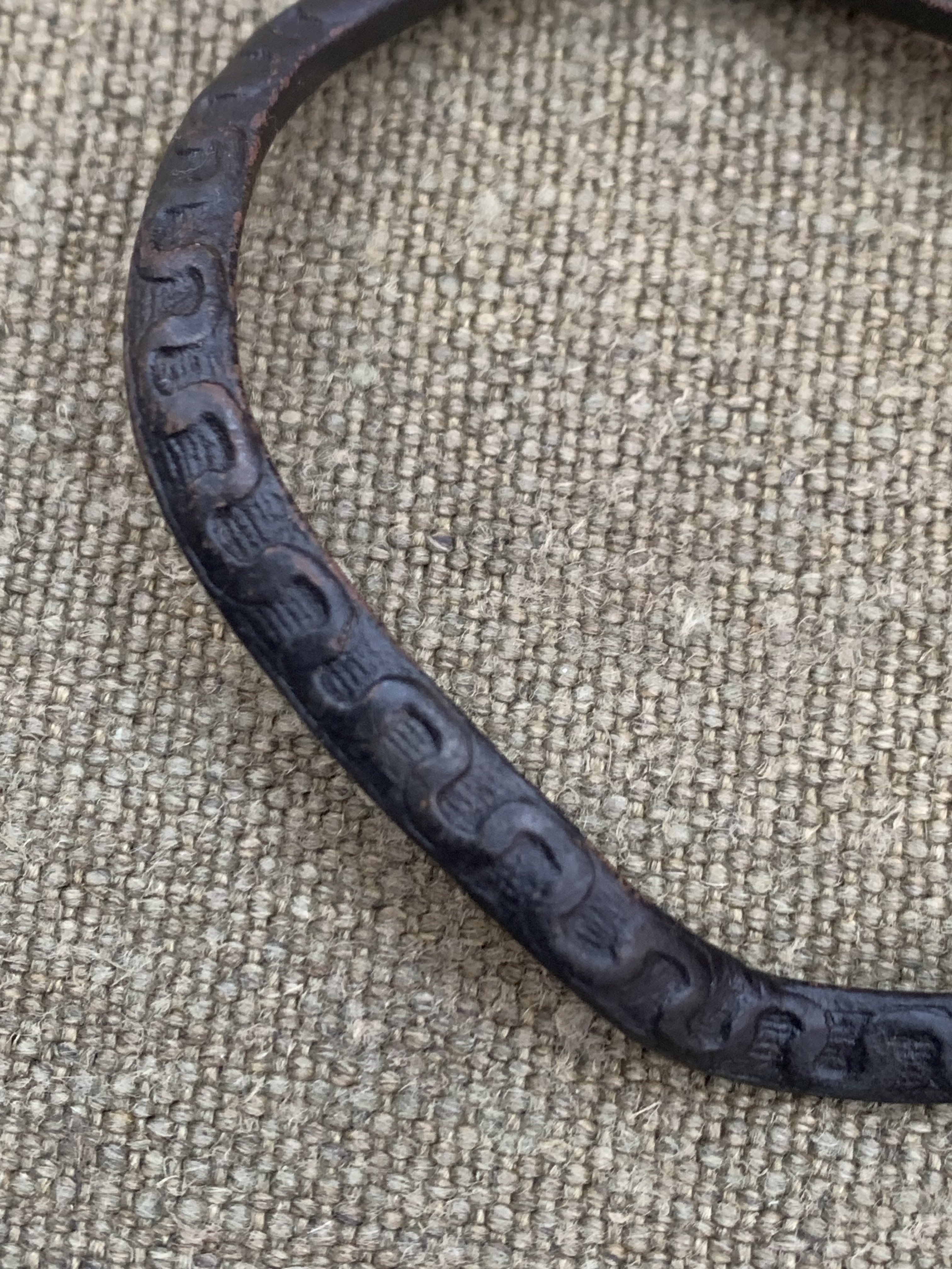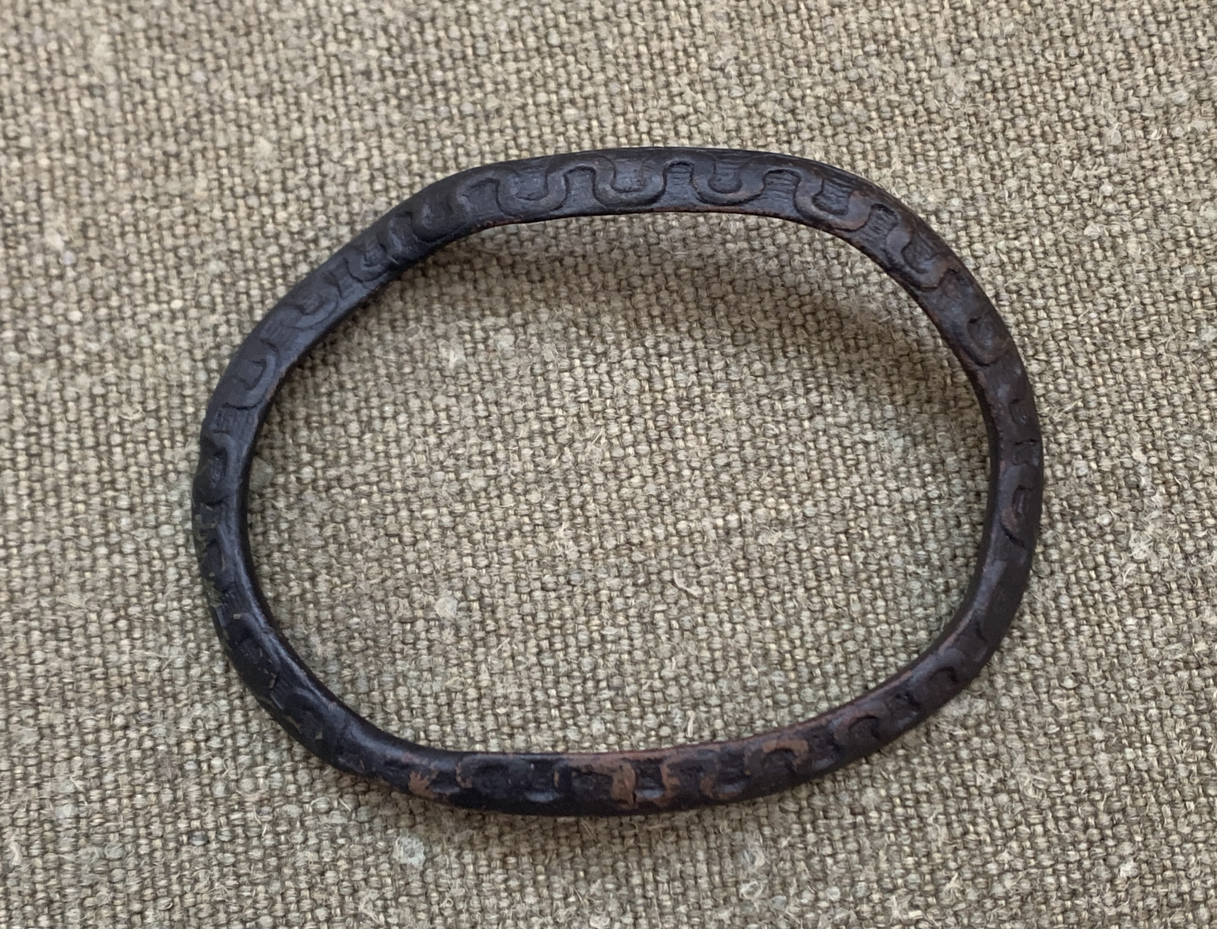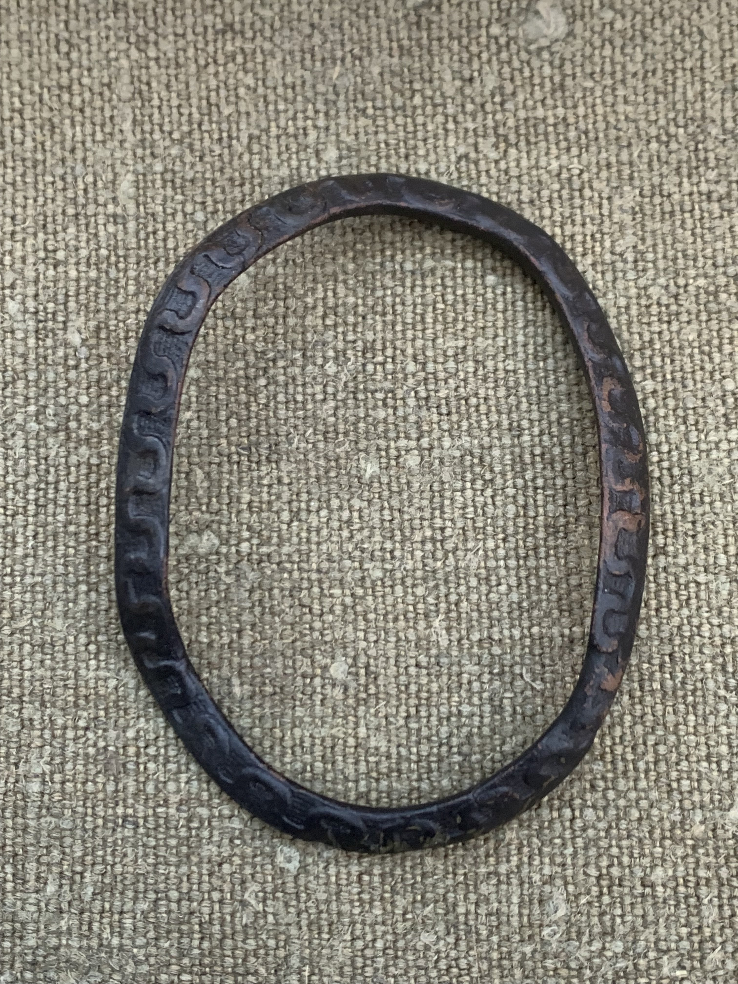Доброго здоровʼя! Копаний біля закинутої хати посеред старого села. Раніше там знаходили монети Сігізмунда, козацький хрест, царські копійки. Нашарування різних періодів. Дуже подібний на браслет. Які будуть думки?