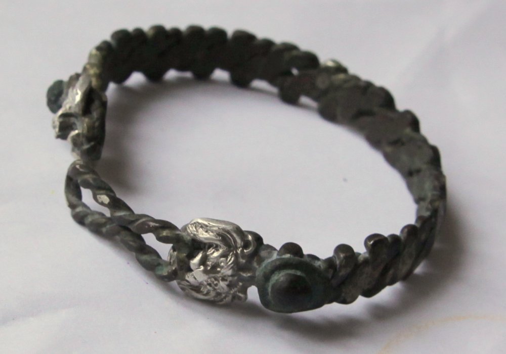 Приветствую,комрады,на месте,где когда-то была слободка, а сейчес-поселуха бомжацкая и мусорка, попался такой браслетик. Материал медь с посеребрением, материал застёжек-серебро. Помогите определиться со временем изготовления.