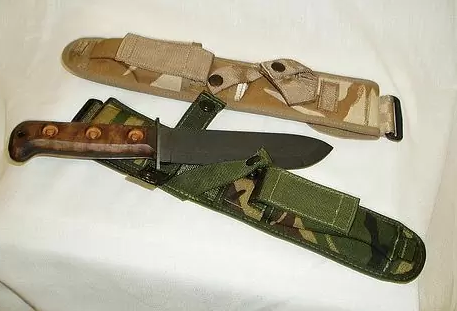 Доброго! Как вариант, ножнами владелец мог сам укомплектовать (и тюнинговать их слегка). Ножны отдельно продаются, Vanguard, к примеру, Rothco и др. Сам нож производства J.R.Hopkinson Ltd. С уважением,