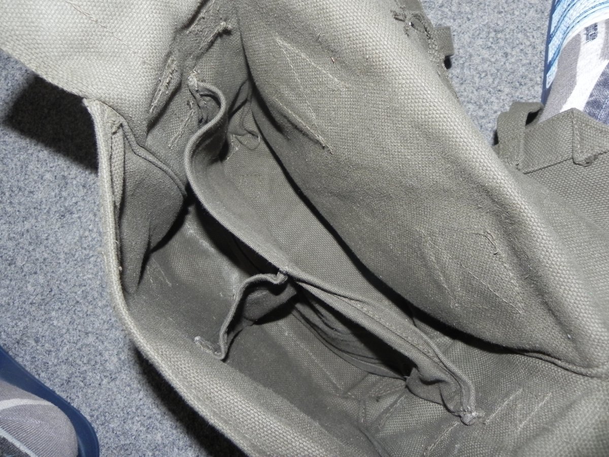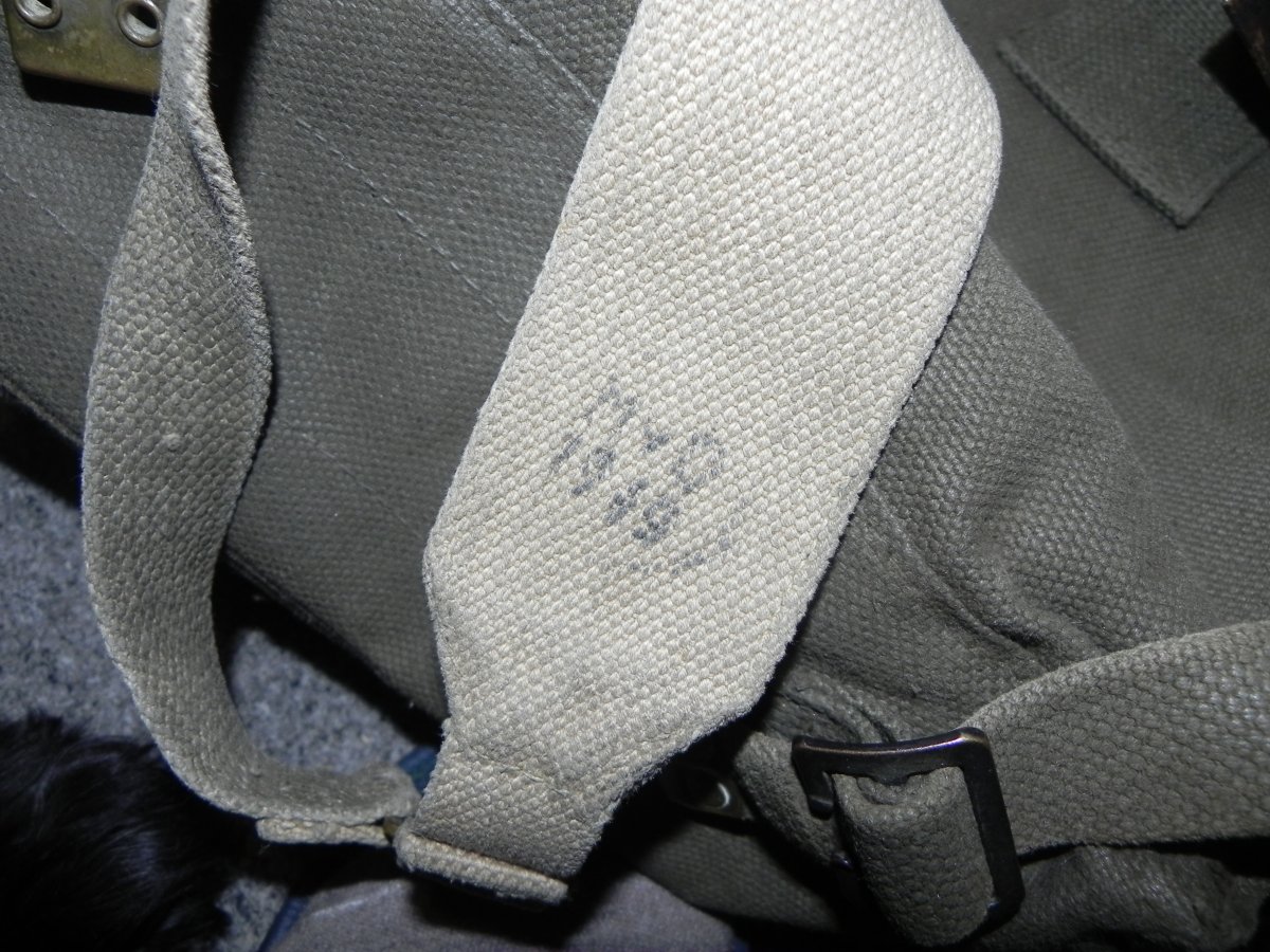 Есть потеря - вырезан квадрат на хлясте-крышке. Последнее фото есть маркировка - вроде год. Прочитал что это снаряжение периода с 1938 года
