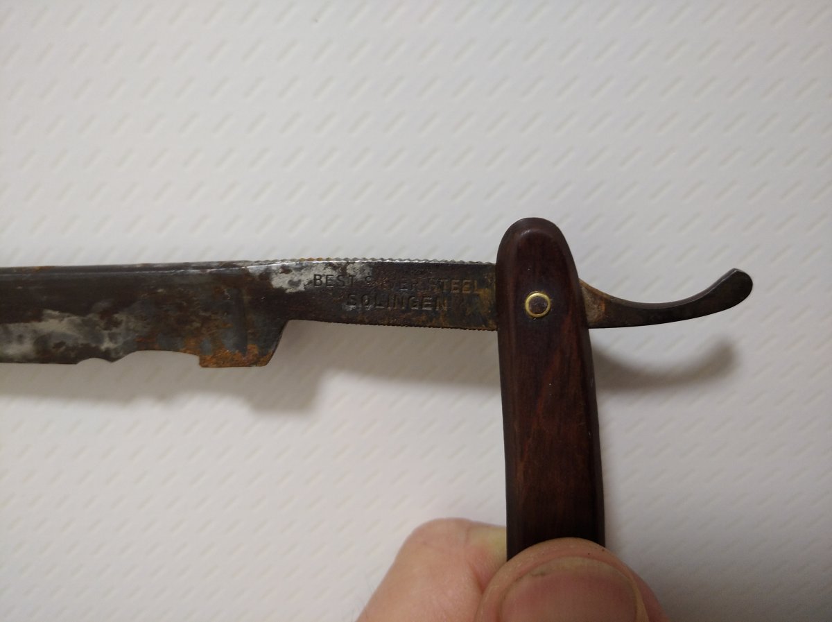 Ось така бритвочка попалась сьогодні просто під ногами на вулиці. Стан не айс, але іржа поверхнева. Більш критичним є пошкодження кромки. Клеймо Best Silver Steel Solingen Питання: 1. Період випуска. 2. Чи можливо/доцільно відновити кромку? 3. Якщо так, то хто/де це може зробити? Дякую за увагу.