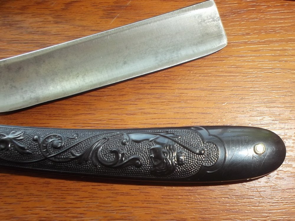 Здравствуйте!Помогите оценить бритву,на ручке есть трещина и следы ремонта,а также аккуратно нацарапано - 1915 г.