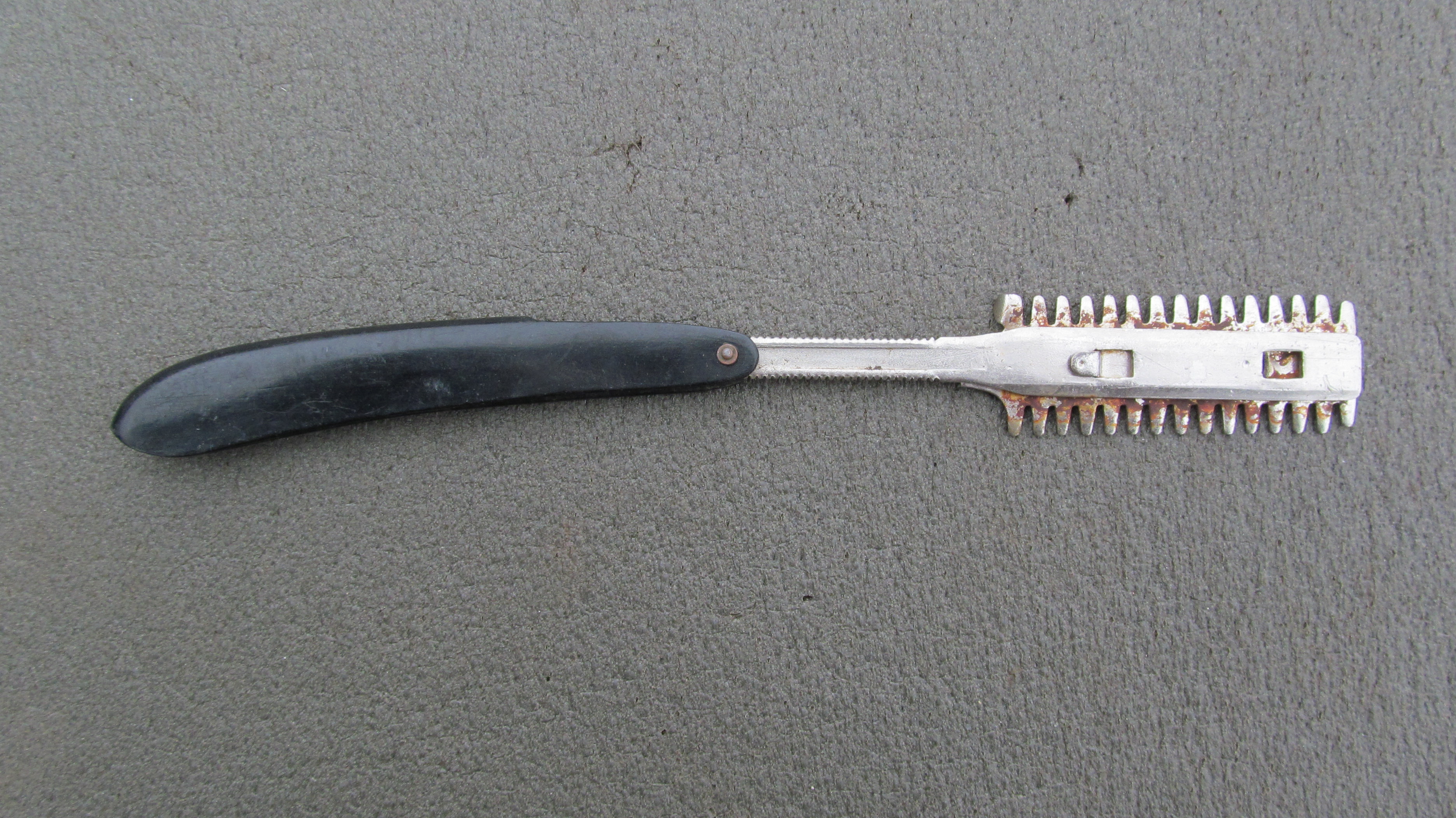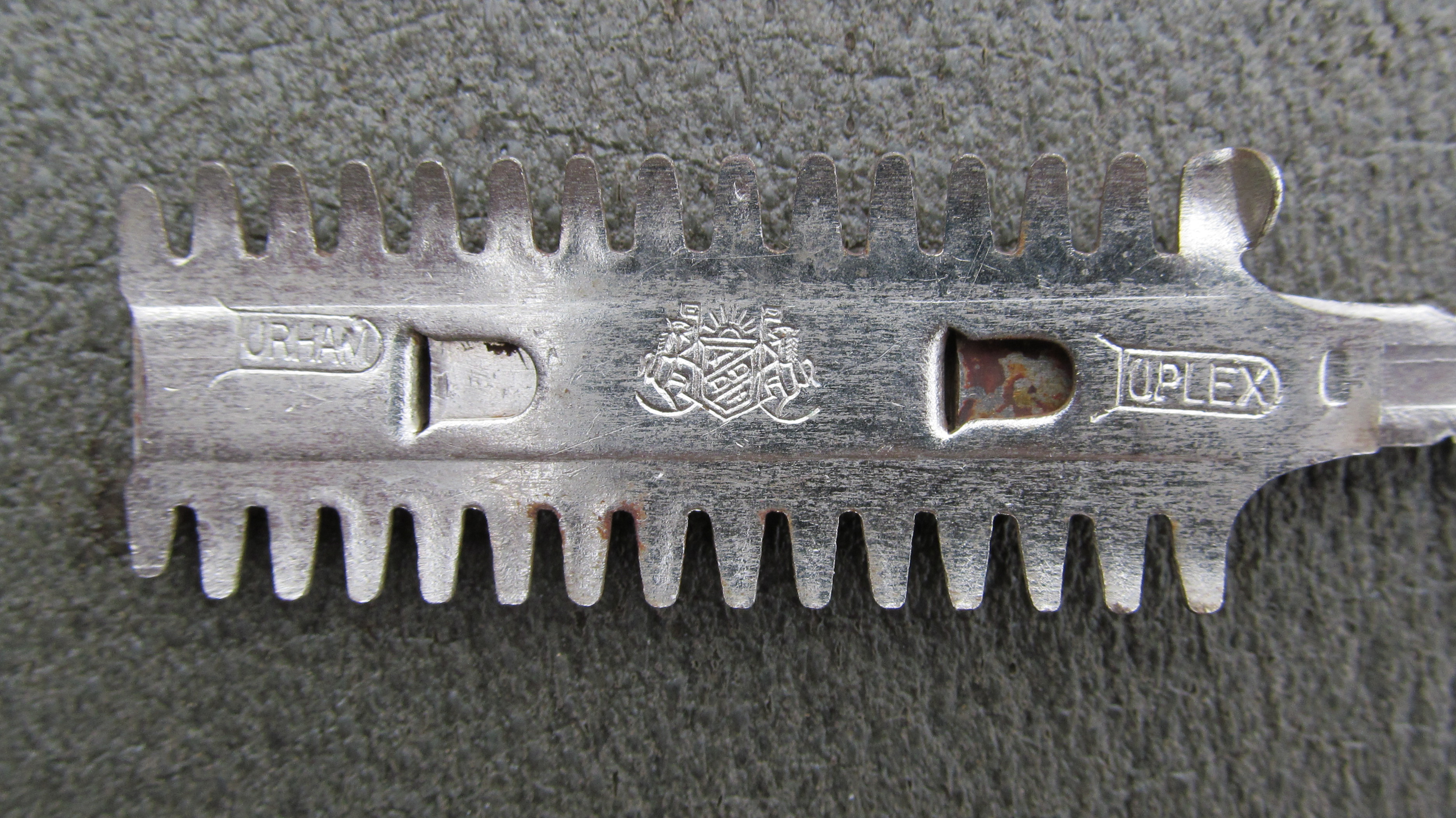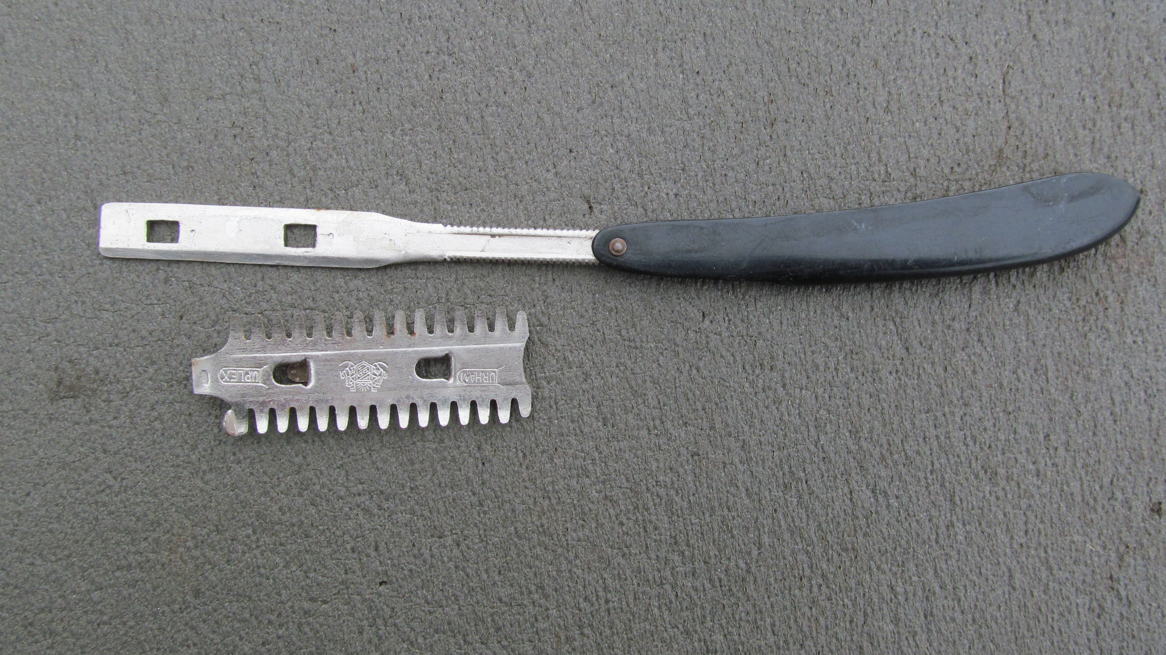 Добрый день.Помогите с оценкой такого предмета.Бритва найдена на немецких позициях,личная находка.Одна защелка отломана на фото видно.