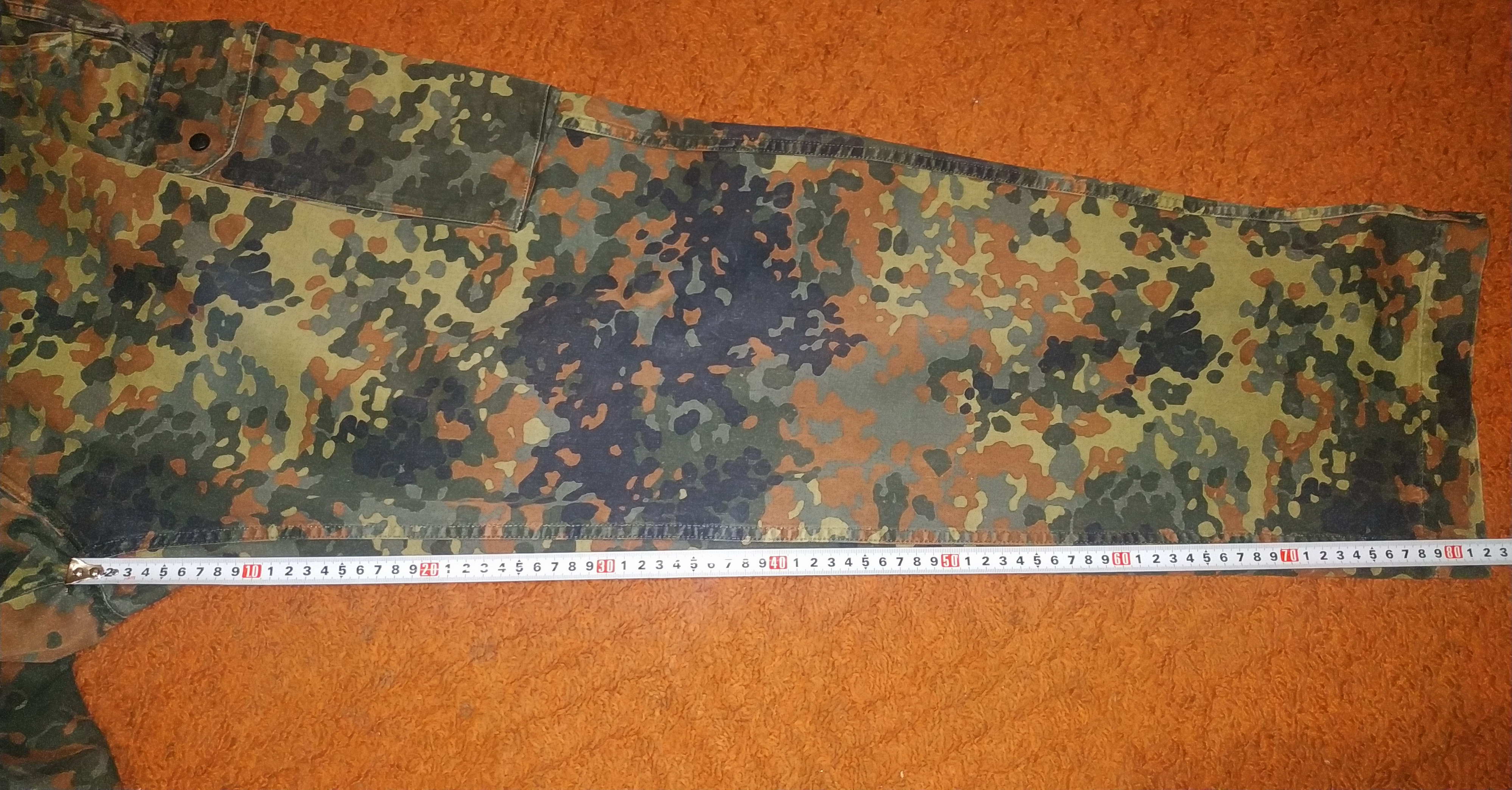Брюки Бундесвера GR.16 (Продано) Брюки Збройних Сил Німеччини (Bundeswehr). Фото 1,2 зі спалахом фото 3,4 без спалаху - при лед освітленні камера освітлення та монітор можуть трохи викривляти колір. Мають 5 кишень. Розмір GR.16 . Загальна довжина 113 см півобхват талії 53+ см, довжина внутрішнього шва 82 см. Реальні заміри приведні на фото Стан -Б/В Ціна 650 грн Накладний платіж