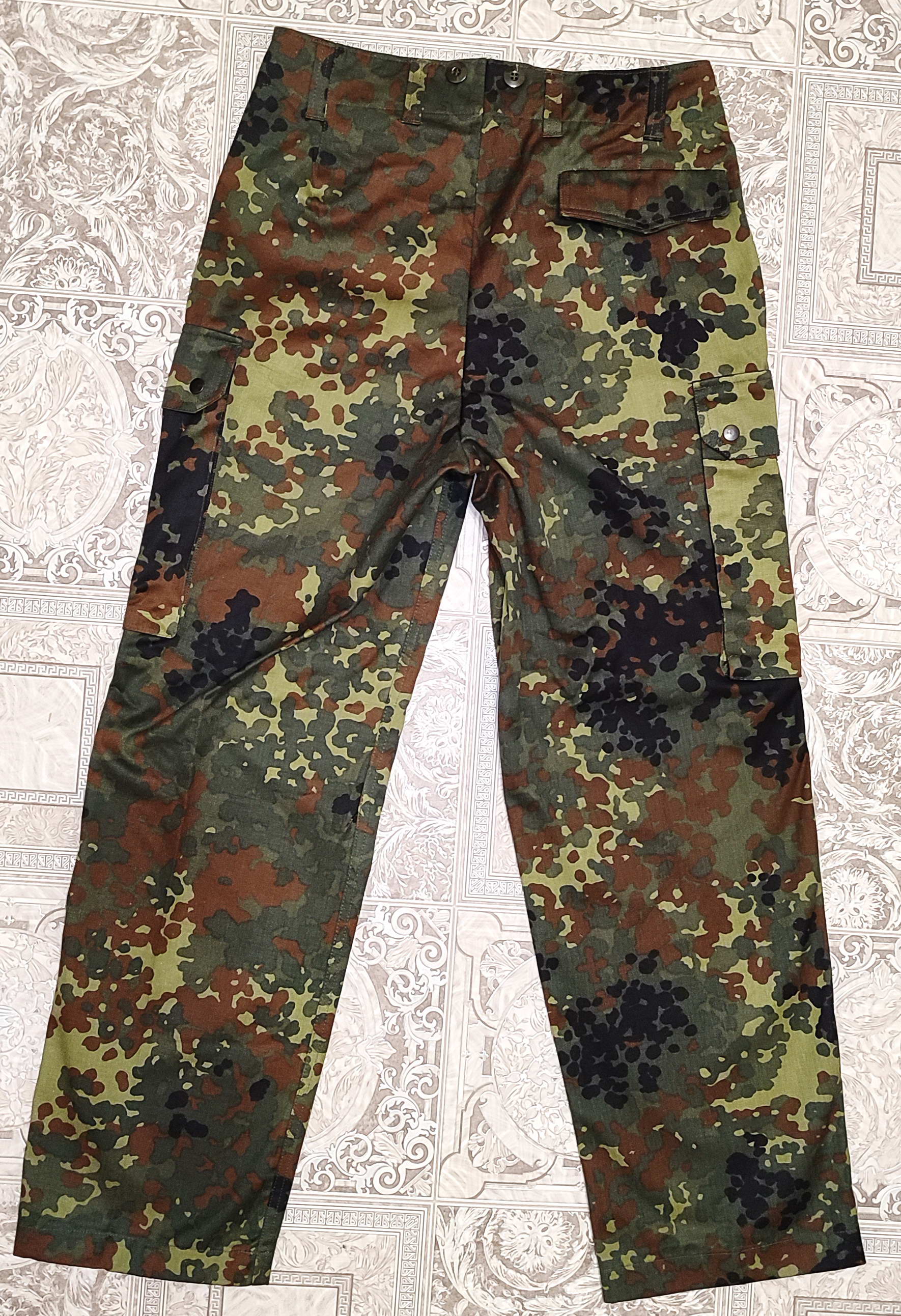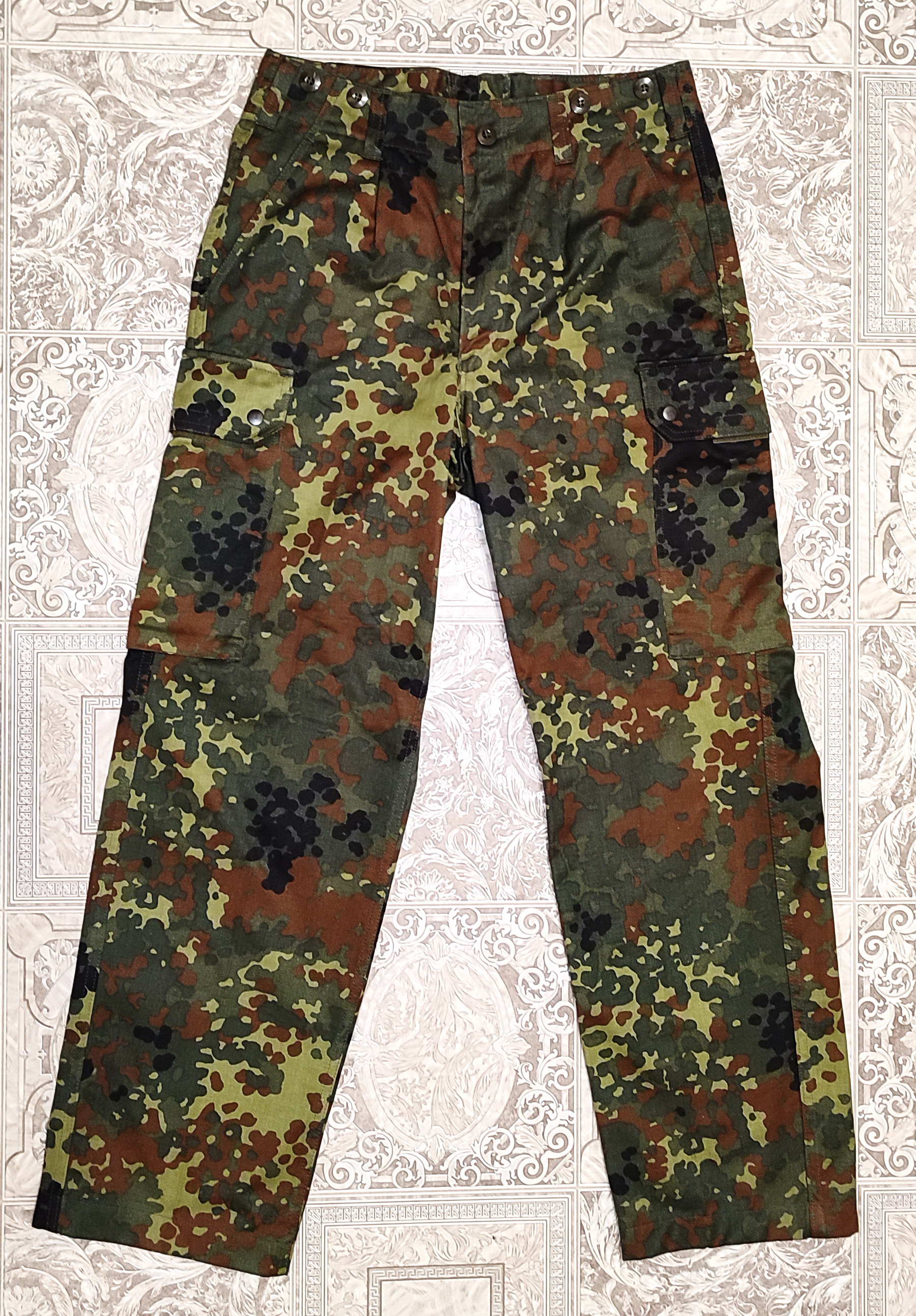 Брюки Бундесвера Gr.Nr6 (Продано) Оригінальні брюки збройних Сил Німеччини (Bundeswehr). Мають 5 кишень. Розмір GR.Nr.6 . Загальна довжина 104 см півобхват талії 40 см, довжина внутрішнього шва 74 см. Реальні заміри приведні на фото Стан -Б/В в дуже гарному стані. Але зовсім незначна мікрозашита дірочка – див останнє фото-сірник для масштаба. Ціна 900 грн