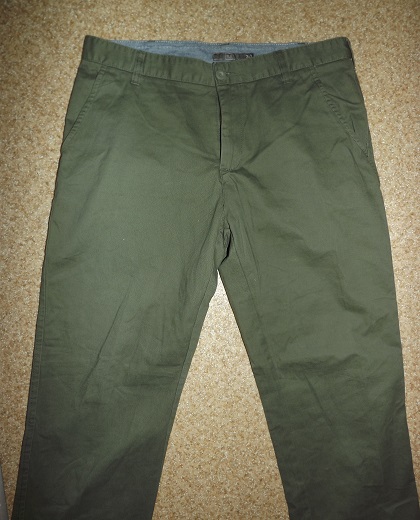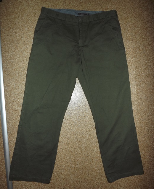 Лот №4. Штаны в цвете хаки, состояние новых, размер 32R , материал-хлопок, . Замеры пояс - 44-45(х2) см внешний шов - 105 см внутренний - 77 см ширина штанины внизу - 23(х2) см Цена - 150 грн