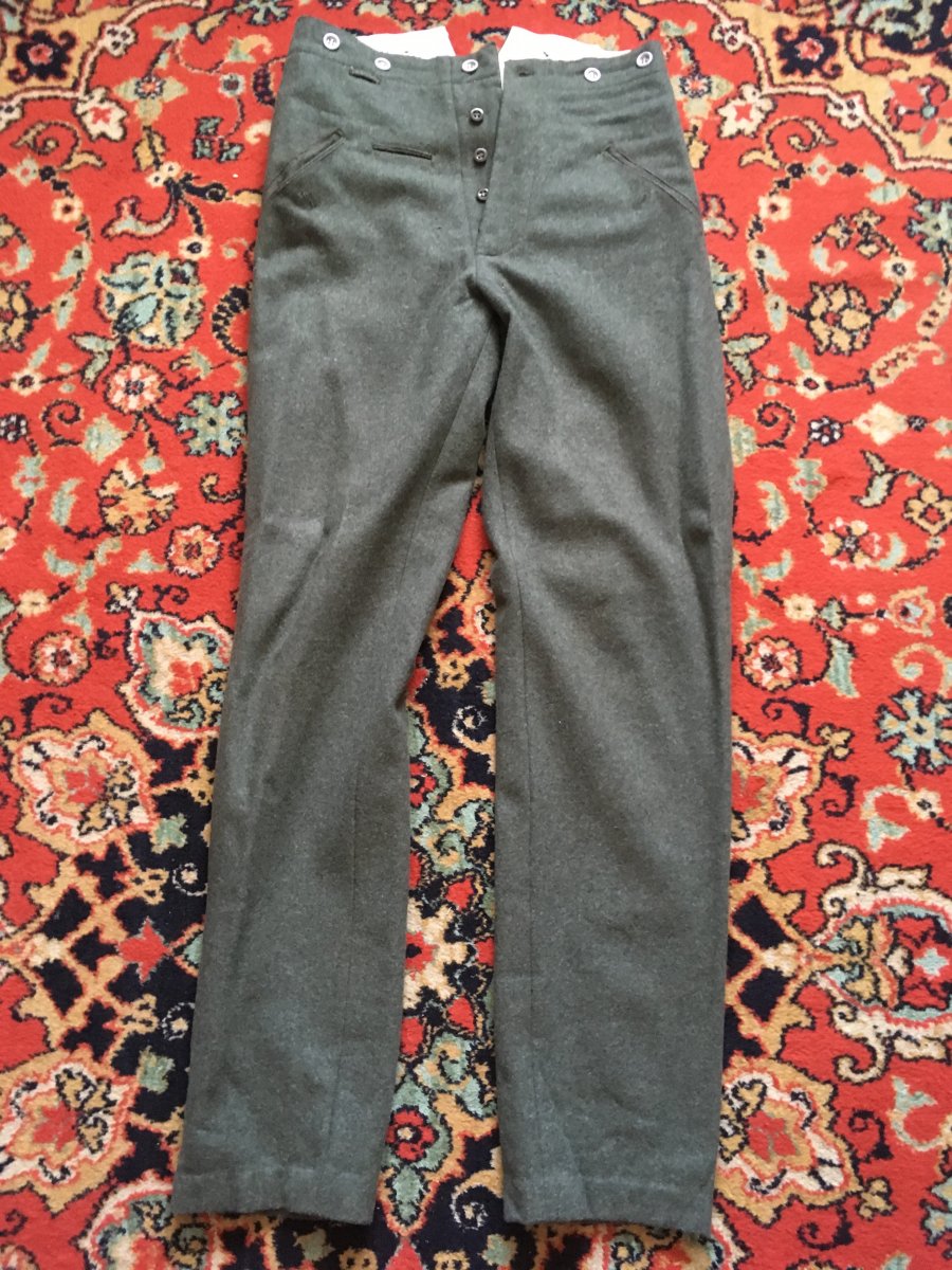 Продам Штаны м40 Вермахт/SS сшиты из правильного сукна в Запорожье известной фирмой "ВОИН". Подойдут на реконструкцию а также хороший реквизит для съемки фильмов. Размер 44 Р6. Очень узки в талии. Если нужны доп замеры с метром сделаю. Одевались пару раз на реконструкцию аж в 2013 году, после этого просто лежали в шкафу. Задние пуговицы под подтяжки оригинал, все остальное копии. Цена 1500 грн. Отправка НП.