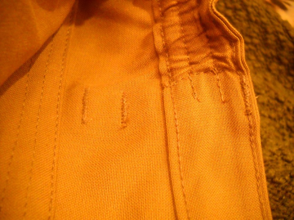 По бокам на поясе вшита резинка. Усиленна верхняя часть задних карманов изнутри. Задние и нижние набедренные карманы на липучках. На всех карманах есть дополнительная прострочка. Змейка Opti