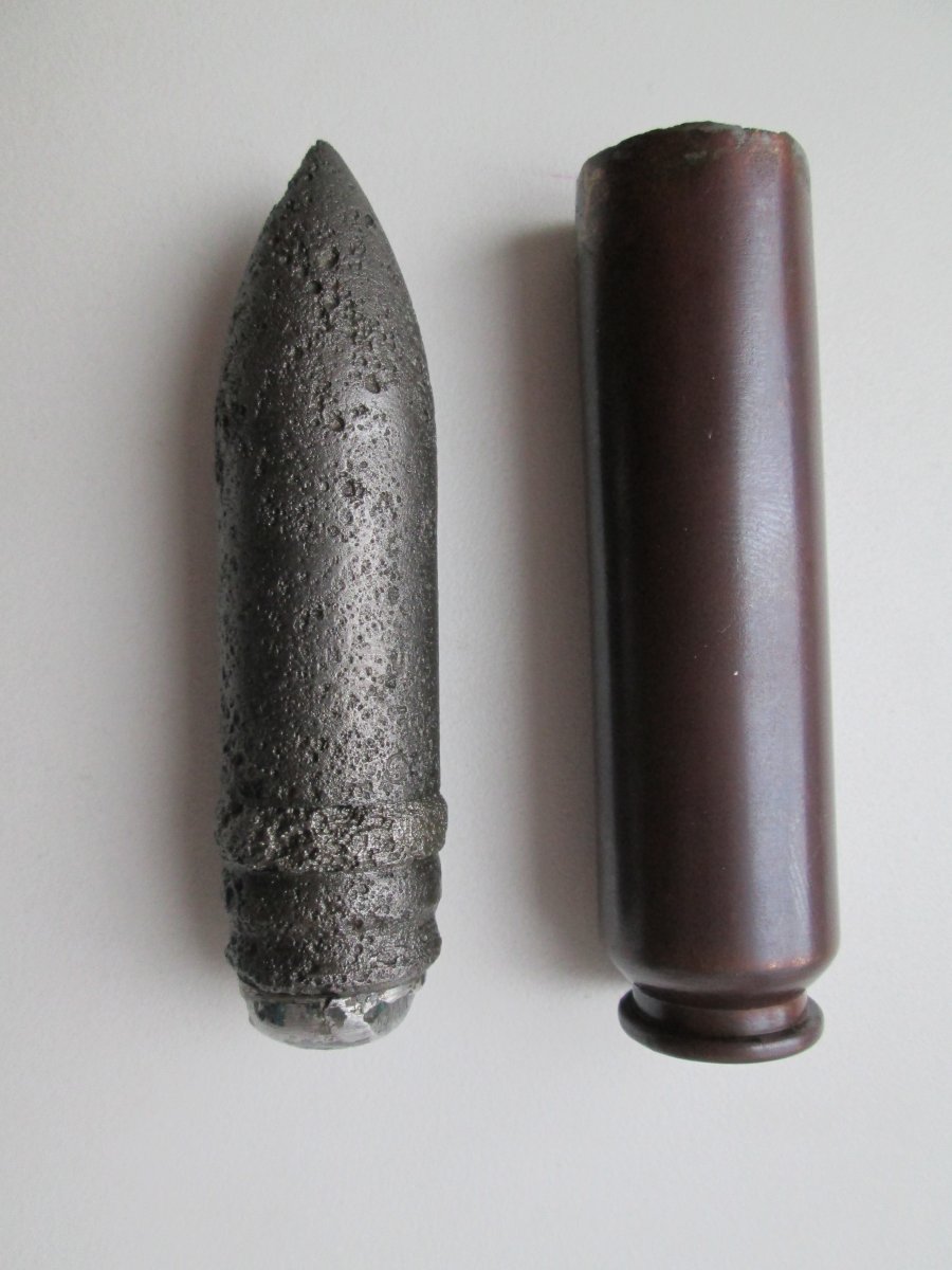 Довольно знакомый калибр.... Множеством таких прошита входная стена завода "Арсенал"в Киеве ,часто там бываю, на площади и иногда расматриваю.Остатки ленинских времен. Поговарили что со швака,по рабочим......революционное восстание. Буду сфотаю.