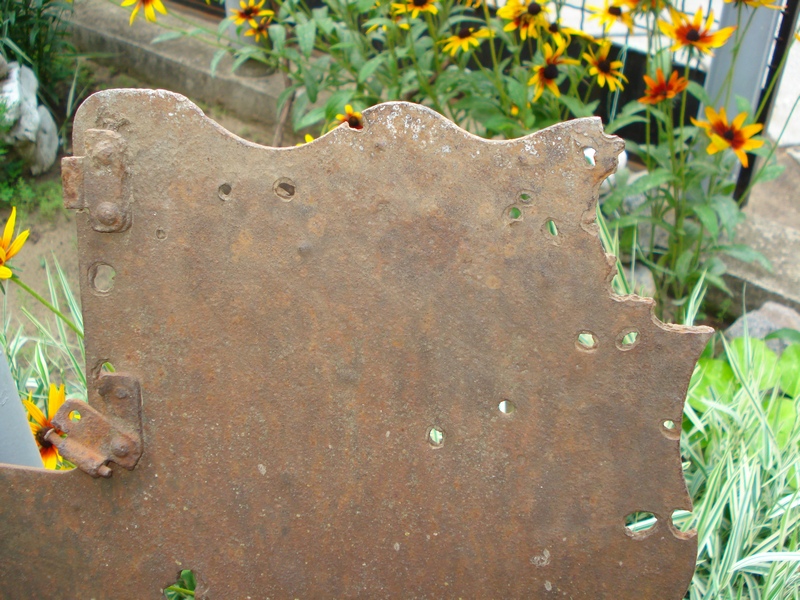 Состояние бодрое, местами видна родная краска, есть несколько пулевых и осколочных повреждений из клейм обнаружил только те что на фото, поле чистки возможно проявятся и другие, щит не из земли, лежал на крыше сарая. Предложения по цене в личку.