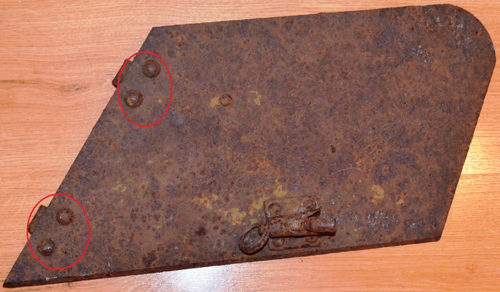 на данном снимке отчетливо видно, что заклепки на петлях заподлицо, особенно на фоне других выпуклых заклепок, которых полно на щите