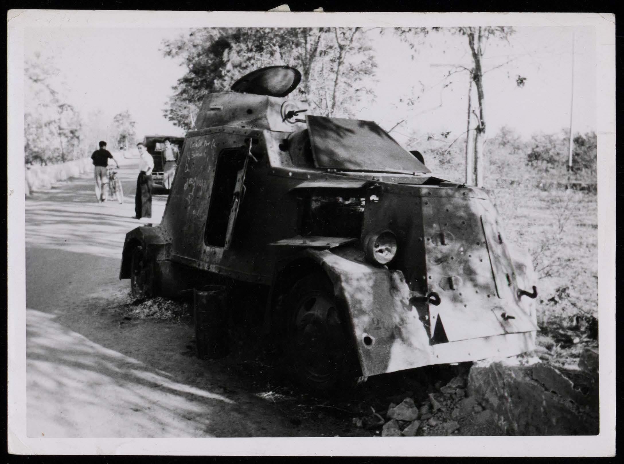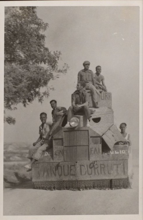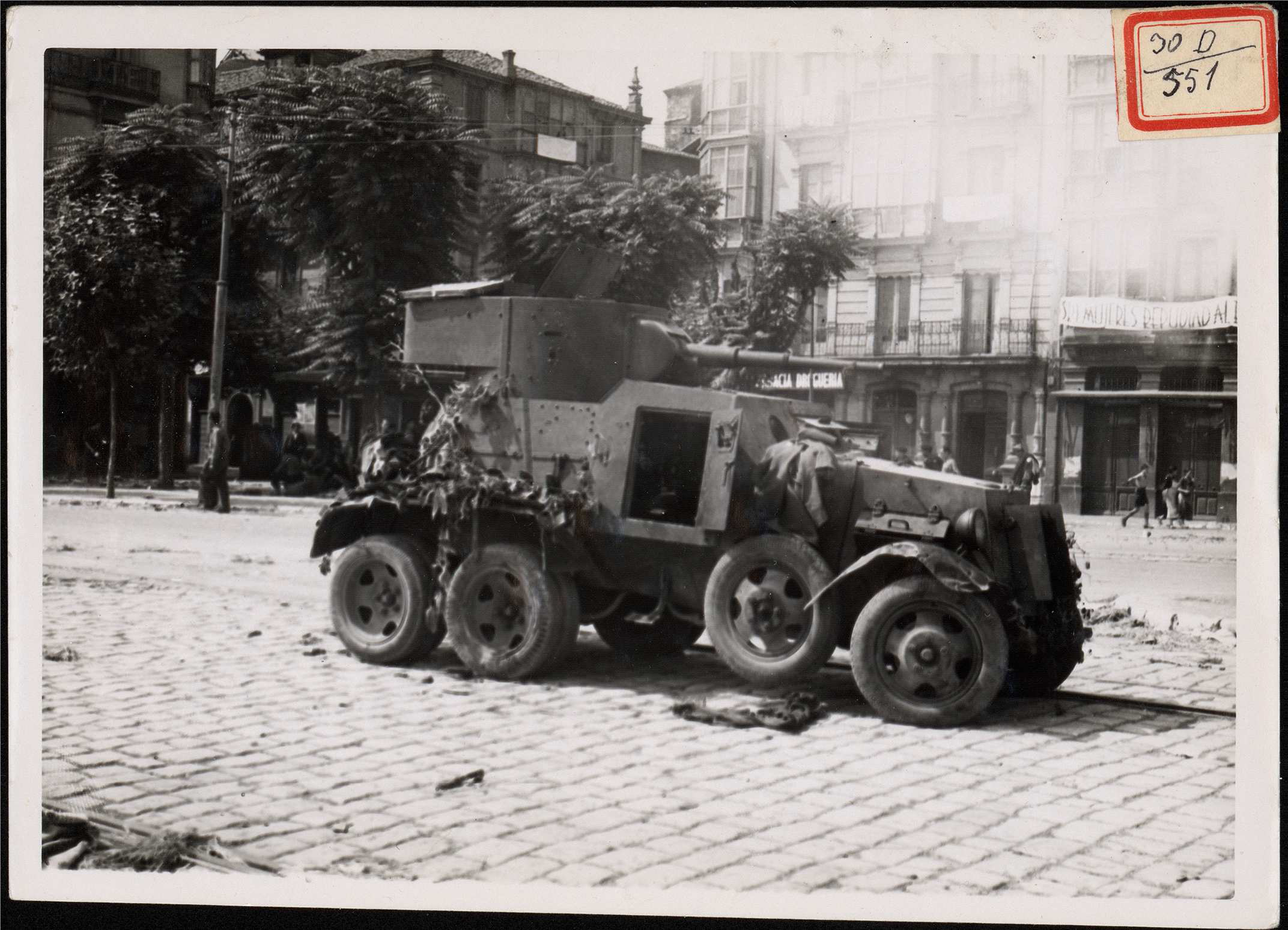 Талавера-де-ла-Рейна в сентябре 1936 г. Главные улицы города заставлены брошенными транспортными средствами, бронированными на скору руку.