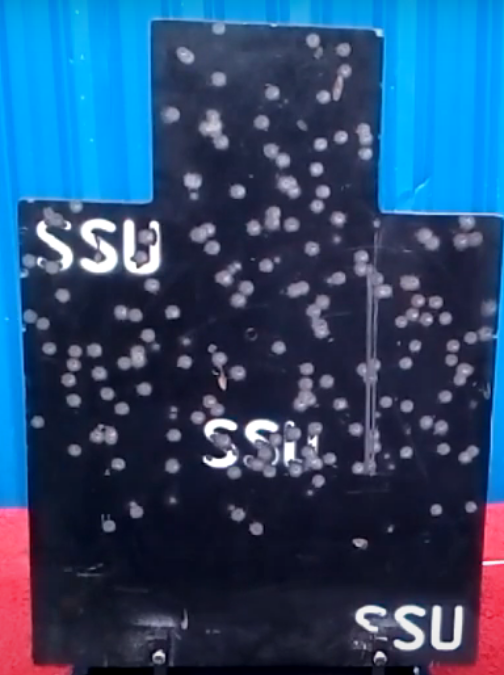 Вот лист 10 мм брони ,в нее сделали 200 выстрелов из РПК-74 патрон 5,45 х39