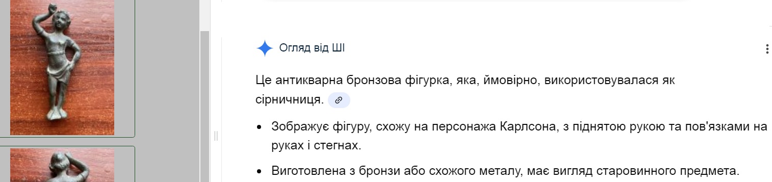 Вітаю! Підкажіть по цьому девайсу. Бронза. По старовині, для чи від чого? Висота 5+см.