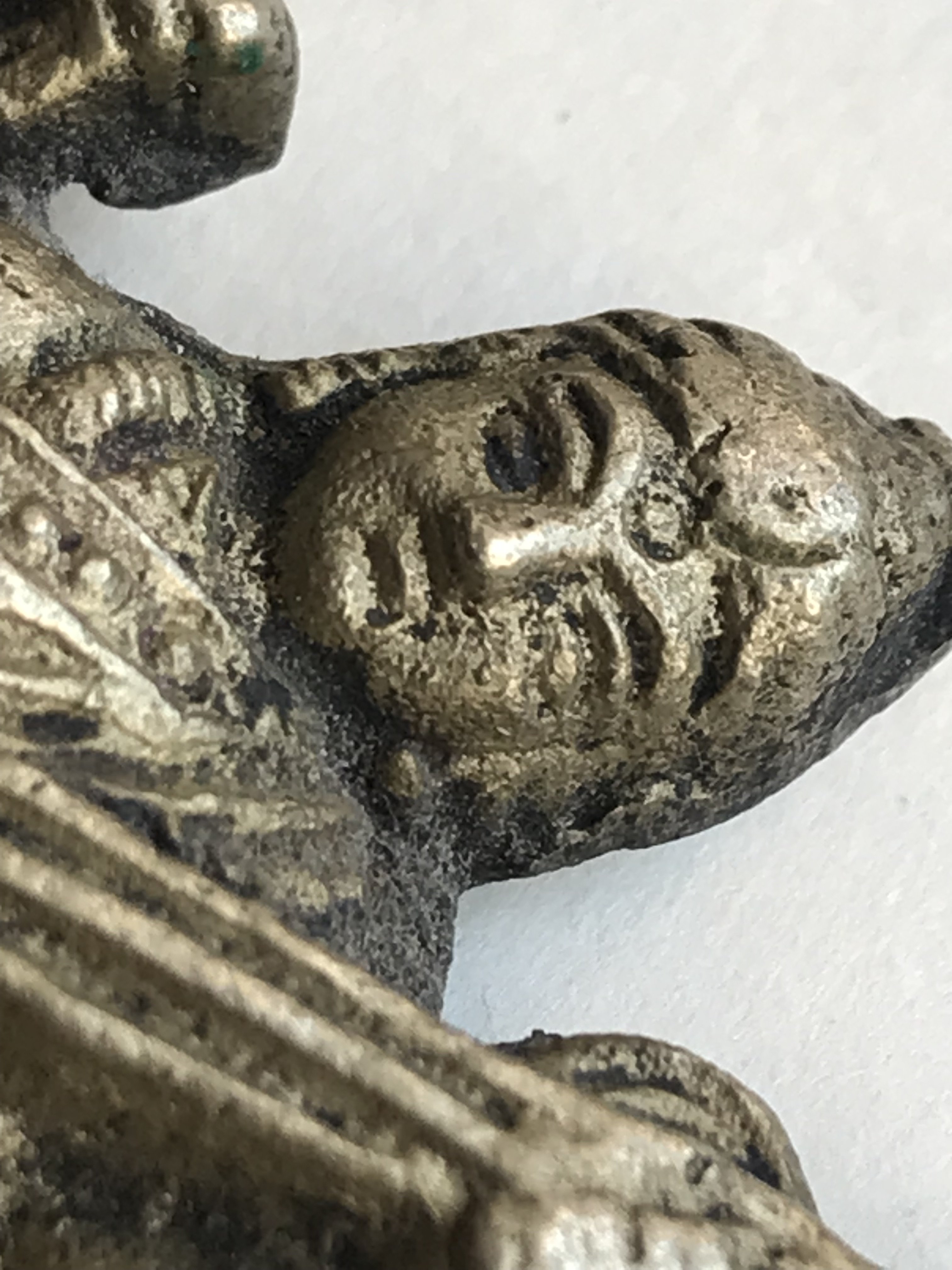 Доброго дня. Підскажіть будь ласка що за фігурка? І яких років? Вроді як на сучасну не схожа де неде злизаний метал. Бронзова важка, вроді як копана. Була вся в землі. Дякую!