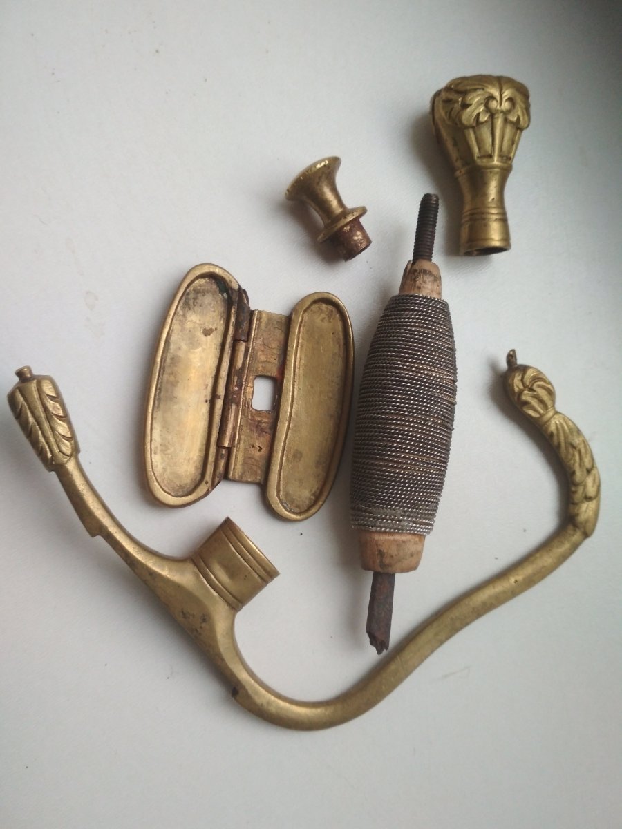 Доброго дня! Запчастини від шпаги! Гарда, навершя(яблуко). Все на рукоять. Гляньте в гуглі(шпага з чого складається, і там є схожі).З повагою Вадим