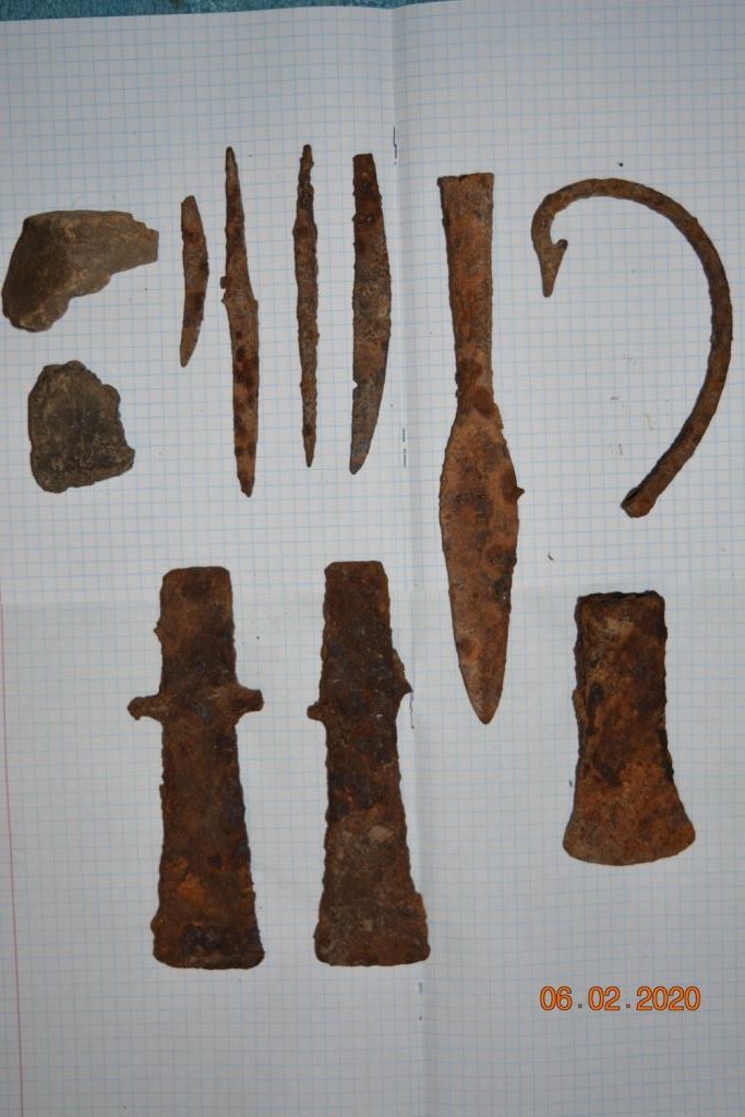 Маю в планах добре оглянути ліс тому що топори і зеркало вже були на рівнині на схилах ні чого вже не було крім крючка а кераміка зеркало проколка два малі ножі були біля зеркала.Також не подалік цьго місця вже на полі є кераміка накінечники але все вибете.