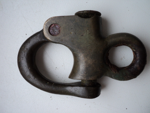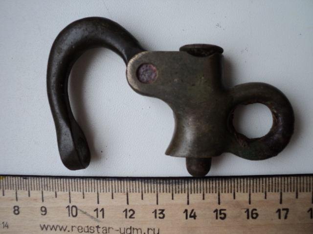 Выкопал такой карабинчик в поле. Были остатки железной цепочки. Клейм нет. Пружина до сих пор работает. Конина?
