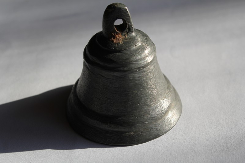 на соседнем сайте подсказали.вот что- Поддужный, даже скорее подшейный колоколец. Оловянистая бронза. Конец 19 начало 20 вв. Тулово не проточено, вес для данного размера великоват, что указывает на отливку кузнеца - любителя. В колокололитейных центрах была несколько иная технология обработки