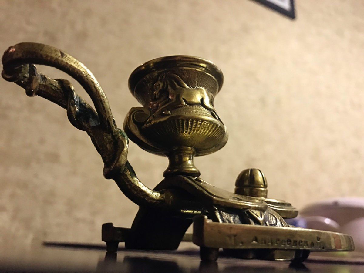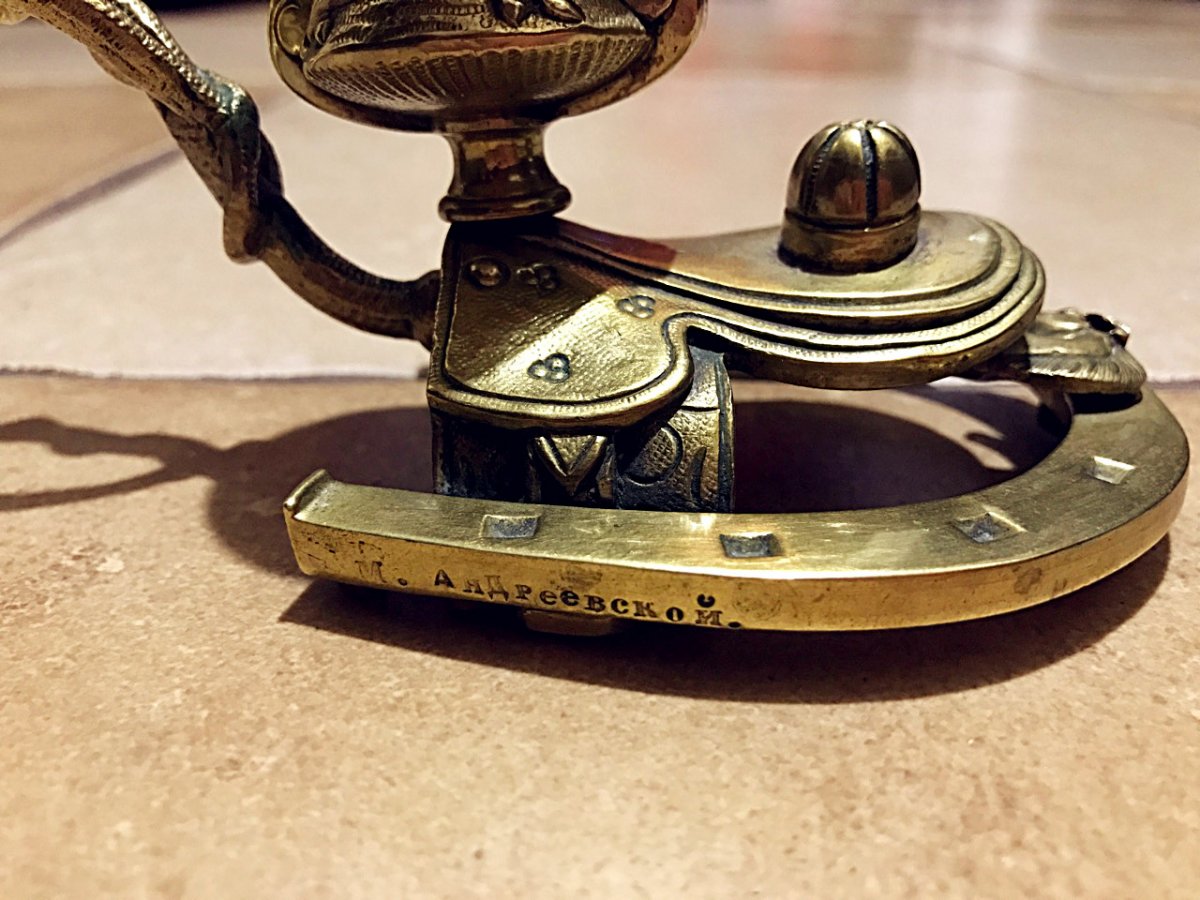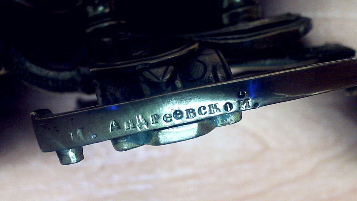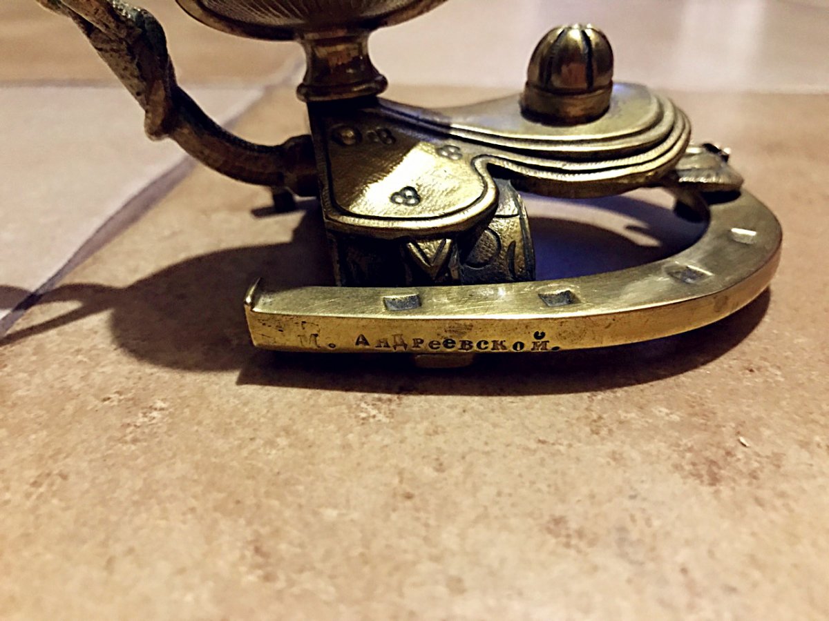 М.Андреевской. Подарок был сделан женщине по фамилии(один из вариантов) Мария Андриевская.. Возможно была связана с верховой ездой. так-как тематика - конная.