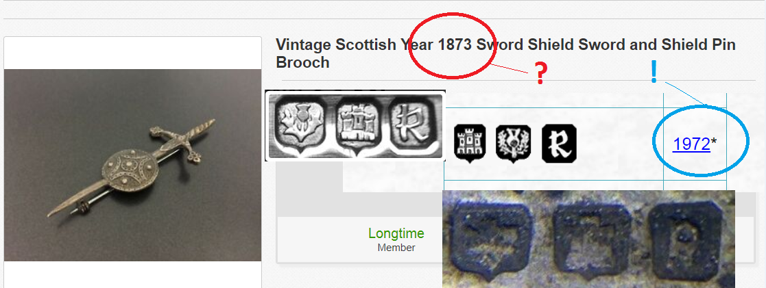 на одному з відомих сайтів продається брошка того ж майстра "Т.Е". https://www.ebay.com/itm/Vintage-Sc...m=352456983807&_trksid=p2045573.c100667.m2042 продавцю подобається число 1873 і за цю любов треба заплатити 235 баксів. причому цю дату він не висмоктав з пальця, а свідомо вибрав в таблиці як до дати найбільш схожих старих клейм. повернення товару у продавця немає і якби " хто не додивився - я не винуватий , вінтаж". )