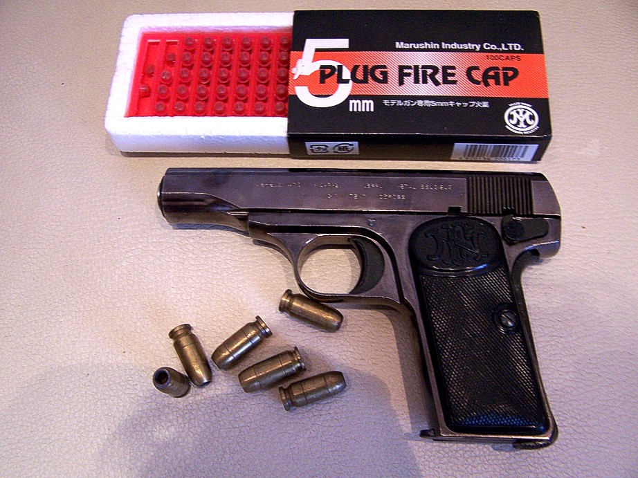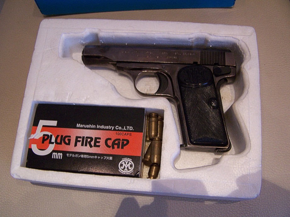Продаю в Киеве макет Browning 1910 калибр 9 мм от Марушин. Внешнее полное сходство, производит шумовой выстрел с выбросом патрона и автоматической перезарядкой с обоймы. Патрон развинчивается для установления капсуля. Комплек с 6 шт патронами и 80 ши капсулями. Габариты и вес идентично оригиналу. УСМ и часть затвора из силумина. Цена в Киеве - 250 долл.
