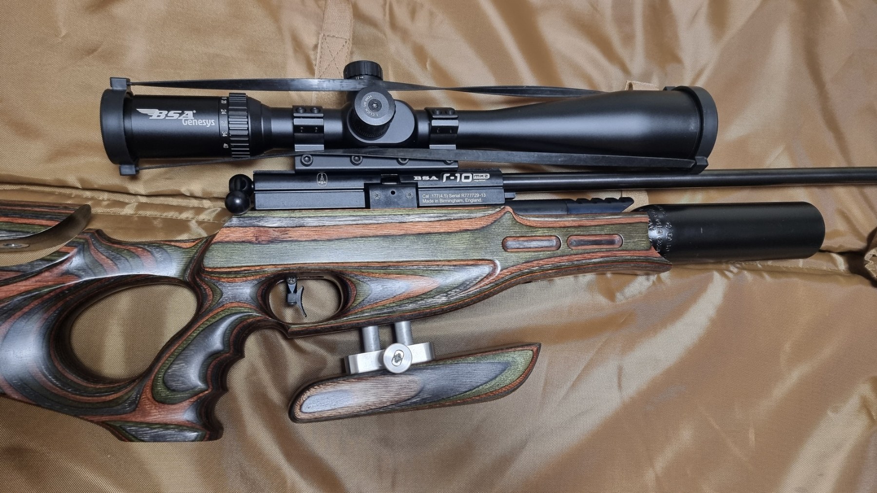 Продам.BSA R-10 mk2 Виробник – BSA CUNS (Birmingham Small Arms Company) – Велика Британія Приклад – ламінат «лісний камуфляж», від Майстра Jjzav Стан рушниці – 5/5 Тип - редукторна, PCP, болтовий затвор УСМ – регульований, спортивний двоступінчастий спуск Ствол холодно кований, нарізний BSA Guns, 12 нарізів – 395 мм Загальна довжина – 98 см Початкова швидкість - 330 м/с Дульна енергія – 27 Дж Резервуар - 232 бар, 200 см.куб Магазин металевий – 10 куль Вага - 3,3 кг Ціна рушниці + модератор + чохол = 25 000 грн. За 29 000 грн. доукомплектую прицілом на вибір: Оптичний приціл Discovery Optics HD 5-30X56 SFIR - 10 000 грн. Оптичний приціл BSA Genesys FT 10-40X56 SF - 8 000 грн. (Велика Британія) Оптичний приціл Hawke Sidewinder 6.5-20x42 SF - 10 000 грн. (Велика Британія) - резерв до 03.05.25