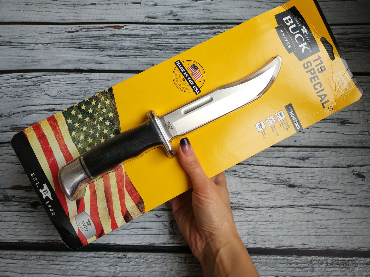 Предлагаю нож с фиксированным клинком от компании Buck knives. Модель 119 Special® Knife (0119BKS). Оригинал. Компания BUCK является самой продаваемой ножевой фирмой на этой планете. Ножи BUCK продаются миллионными тиражами по всему миру уже более 110 лет. Первые ножи с именем BUCK начал делать в далеком 1902 году Хойт Хиз Бак - основатель империи. Это было в штате Канзас. Много позже - в 1941 году уже в Сан-Диего Хойт стал делать ножи в промышленных масштабах. Первый "завод" BUCK был под навесом гаража его сына Ала. А уже через год, в 1942 году появился и сам «119 Special». Buck 119 Special — это один из самых популярных ножей с фиксированным клинком, выпускаемых американской фирмой «Buck Knives». На рынке эта модель существует уже более 75 лет и до сих пор актуальна. Buck 119 — в данный момент позиционируется компанией как охотничий нож с клинком типа клип-пойнт (боуи, «щучка»), выполненным из нержавеющей стали 420 НС. Фирменная термическая обработка позволяет клинку хорошо держать заточку и отлично резать. Buck 119 имеет великолепный баланс и разумный для охотничьего ножа вес. В базовом варианте рукоять выполнена из черного полимера (Phenolic), тыльник и гарда — алюминиевые. Большинство пользователей, имеющих опыт общения с Buck 119 Special, отмечают качество реза, удобство в эксплуатации и надежность этого ножа. При относительно небольшой стоимости Buck 119 способен решать практически все задачи, возникающие у охотников, туристов и военных в любых климатических условиях. Это один из любимых ножей Леса Строуда (Les Stroud) — знаменитого инструктора по вопросам выживания. Также Buck 119 пользовался большой популярностью и у американских солдат во время Вьетнамской кампании. Они приходили с ним на службу и активно использовали как в процессе боевых действий, так и в качестве хозяйственно-бытового ножа. Ссылка модели на сайте производителя: https://www.buckknives.com/product/119-special-knife/0119FAM01/ Видео от производителя: В 2017 году к 75-летию модели Buck knives выпустила целую серию видеороликов «Stories of the 119 Special» посвященных этому ножу. Посмотреть которые можно на официальном YouTube канале компании. Еще одно, для наглядности: Обзоров по этой модели в сети очень много, и если вдруг кто-то не знаком с этим ножом, то дополнительно поискать-посмотреть информацию и обзоры будет легко. Характеристики, заявленные производителем: Общая длина: 267 мм. Длина клинка: 152 мм. Толщина клинка: 4,5 мм. Материал клинка: 420HC Stainless Steel, satin finish. Тип клинка: Clip Point. Материал накладок рукояти: Phenolic Black. Материал гарды/тыльника: Aluminum. Вес (без ножен): 217 г. Ножны: Genuine leather sheath, black. Страна поставщик: США. Страна изготовления ножа: США. Страна изготовления ножен: Мексика. Упаковка: Фирменная коробка или фирменный блистер. Нет в наличии. Стоимость: грн. Резервы в теме, вопросы, пожелания - в личку. Фото (коробка): Фото (блистер): В другие города отправляю Новой Почтой (оплата за доставку при получении, по тарифам перевозчика). Оплата на карту Приват банка. Смотрите и другие мои темки о продаже: Складной нож Cold Steel Rajah 3 Складной нож Kershaw Launch 3 Blue Нескладной нож CRKT Strafe Нескладной нож Cold Steel Master Hunter Складной нож Kershaw Leek Складной нож SOG Flashback Складной нож Cold Steel Counter Point 1 Складной нож Kershaw DuoJet Нескладной нож Gerber Mark 2 Нескладной нож Cold Steel Steel Tiger Складной нож Kershaw Natrix Нескладной нож CRKT Carson F4 Нескладной нож Cold Steel Counter Tac 2 Складной нож Kershaw Passage Складной нож Schrade SCHA5 Складной нож Cold Steel Luzon Medium Складной нож Kershaw Tension Скл