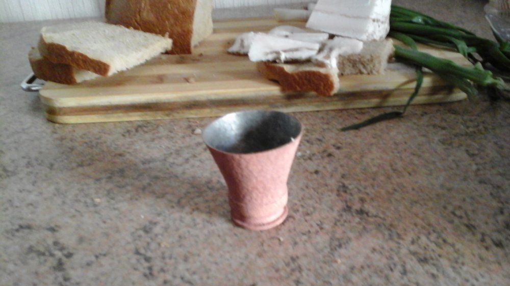 Іще обов"язково має бути шматочок чорного хліба, часничинка, а маленький помідорчик щойно принесений з городу, іще теплий від сонця, аж солодкий, не митий, а лиш витертий об рукав. Та ні, більше ніж два.