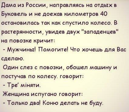 В 90сти з роботою було погано,то пишов я в радиотакси.Якось пидвозив з вокзала в аэропорт двох рашенледи.На проспекти весив плакат-ГАНЬБА МОСКОВСЬКИМ КАТАМ!.Вони прочитали и кажуть-И чем это вам наши коты неугодили?Вы бы еще до собак до.....сь.Нечего я им не ответил-давился соплями от смеха.