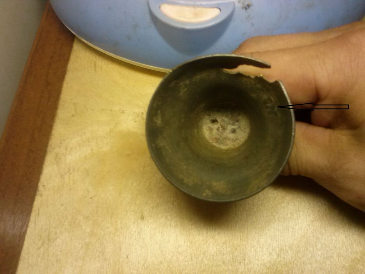 Помив водою, нічого не побачив. Але всередині нарости бруду, мо під ними щось є. Треба чистити. Можу кинуть завтра в електроліз, але напевно вся патина зійде. А може це фальшак
